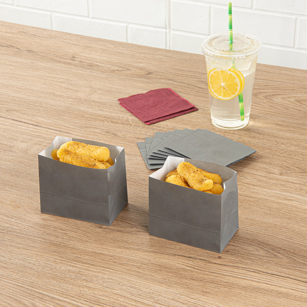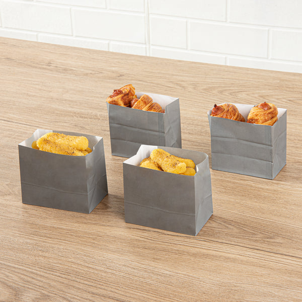 Enhance your foodservice operation with versatile packaging solutions. Bag Tek Paper Snack Bags, designed with a 4.25-inch length, 2.5-inch width, and 3.75-inch height, feature a flat bottom that allows them to stand upright, ensuring effortless packaging and presentation of goods. These snack bags maintain a neat presentation for pastries, keeping them visually appealing during transport. Constructed from high-quality paper, they are durable enough to carry hefty items like sandwiches and wraps without tearing, catering to cafés and delis looking for reliable packaging. Additionally, their recyclable nature supports eco-conscious operations, aligning with modern sustainability initiatives. Invest in these paper snack bags to enhance your packaging efficiency and customer satisfaction. Each order includes 100 Bag Tek Paper Snack Bags.