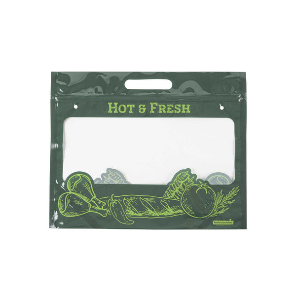 GREEN PLASTIC ROTISSERIE CHICKEN / HOT FOOD BAG - HOT & FRESH