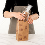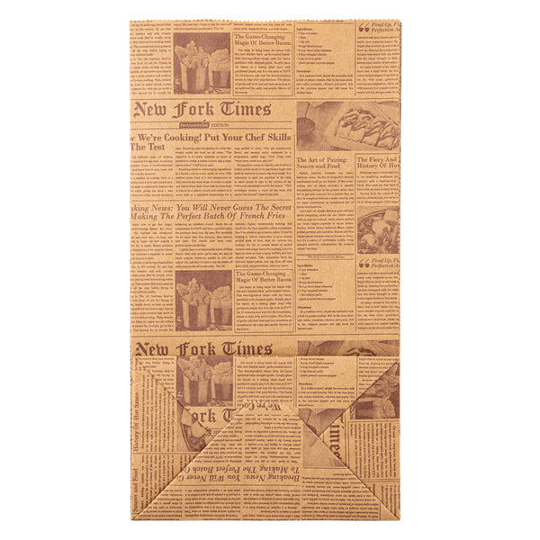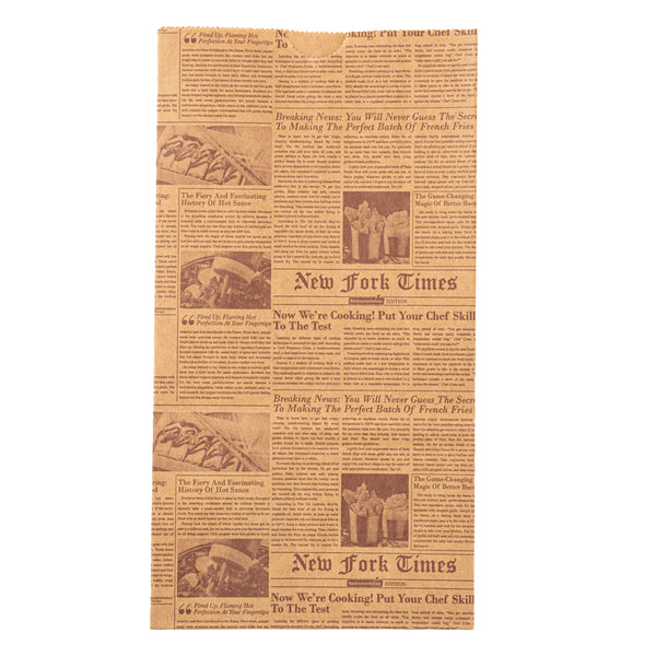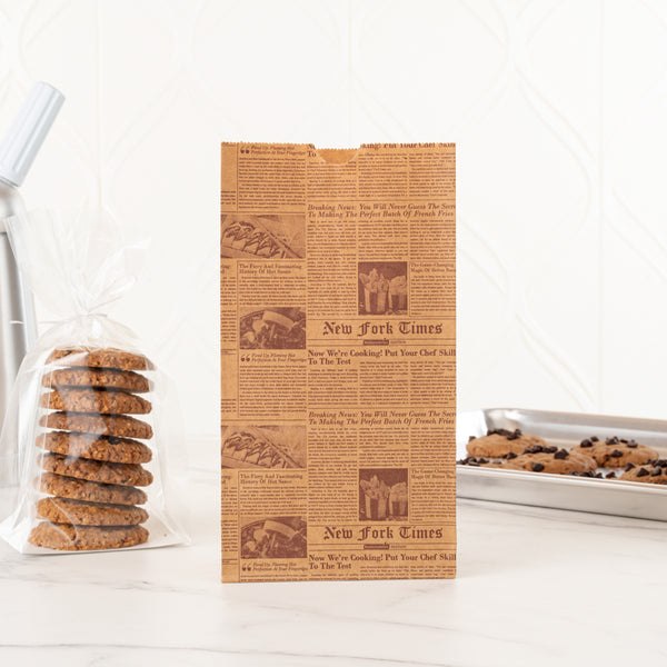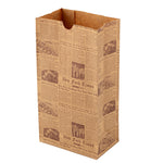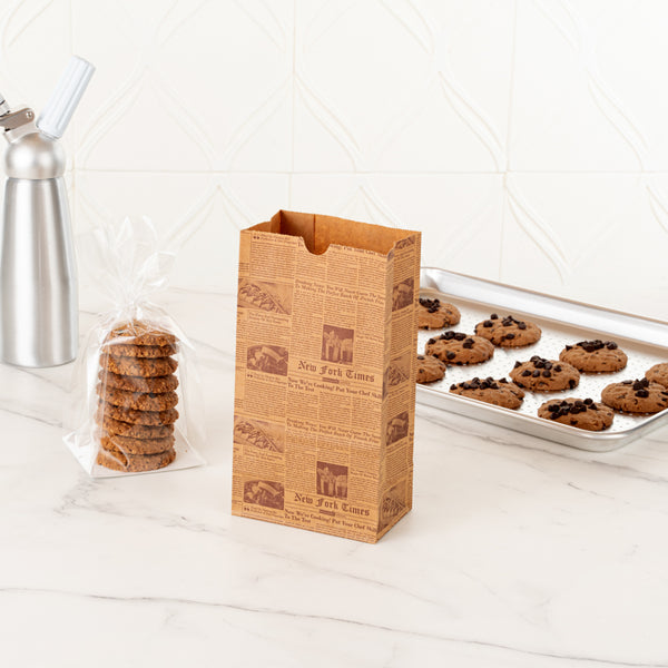 Give a new look to your guests' take out orders with our Bag Tek Kraft Newsprint Paper Bags. Manufactured with high-quality kraft paper, these paper sandwich bags are durable and do not rip easily. Plus, these kraft paper bags retain oils and sauces from seeping through. Styled with a newsprint design, these paper bags for food add a vintage touch to your guests' on-the-go orders. With an open-top design, these brown paper bags let you fold them to secure the contents during transit. These newsprint paper bags are microwavable and freezable, allowing your customers to store and reheat their leftover meals anytime. With a rectangular flat bottom, these bags without handles can stand upright on tables without falling for effortlessly packing orders. Conveniently disposable, these grocery paper bags are highly sustainable to speed up your clean-up process. The gusset sleeves on the sides of these paper lunch bags can be extended to provide more space to pack your dishes. Measuring 5 inches in length by 3.25 inches in width by 9.50 inches in height, these kraft bags can hold up to 4 pounds. Shipped in a 100 count box.