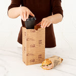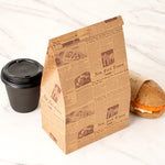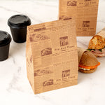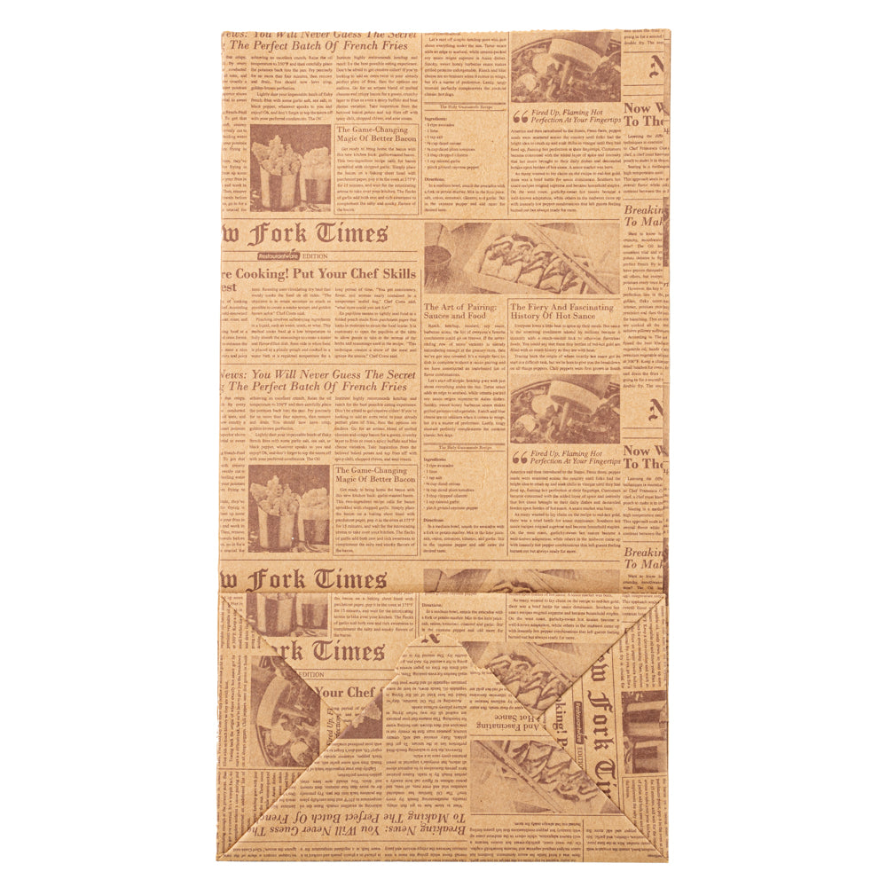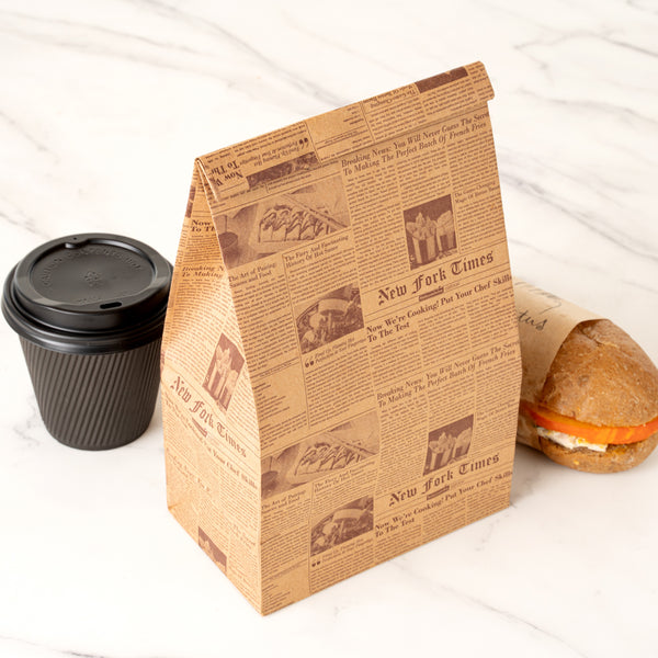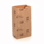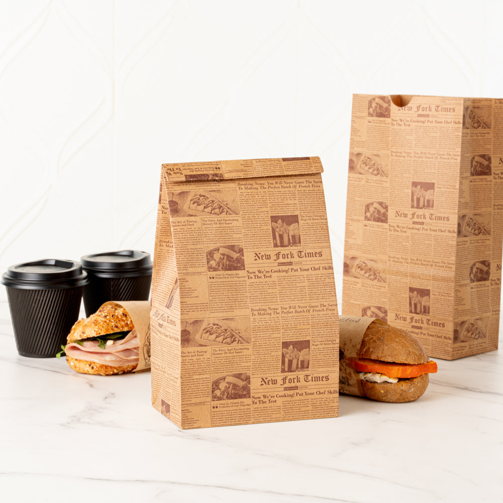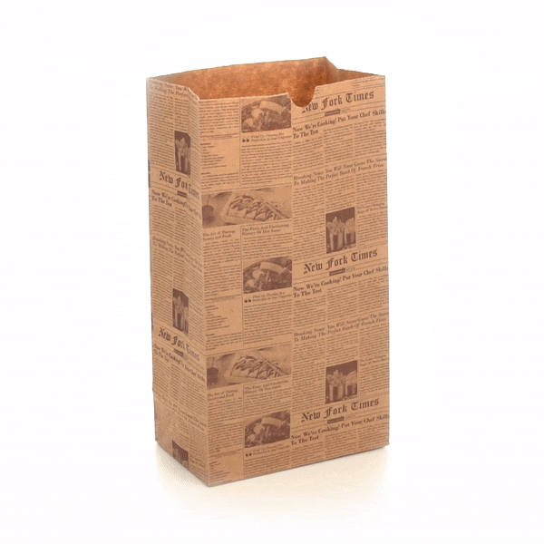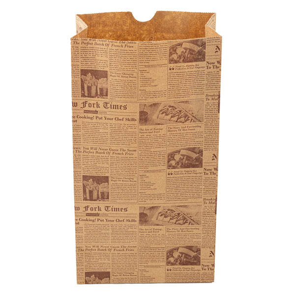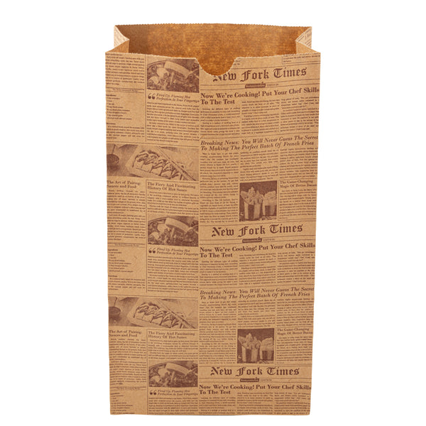 Make your guests' on-the-go food orders easy to carry by using our Bag Tek Kraft Newsprint Paper Bags. The high quality of these kraft paper bags lets them secure the oily and saucy dishes within them. The newsprint design of these paper bags for food adds a tint of classic style to your takeaway meals. With an open-top design, you can conveniently pack your orders, avoiding any mix-ups. These disposable paper sandwich bags are sustainable and can be discarded easily after use. To avoid messes in your fridge or microwave when storing or reheating leftovers, these paper bags without handles are reliably microwavable and freezable. The sides of these brown paper bags have gusset sleeves that can be extended to add more space for packing your food items. With a flat rectangular bottom, you can conveniently make them stand upright on the table while packing. The stackable design of these newsprint paper bags saves space in your kitchen or food trucks. Measuring 6 inches in length by 3.5 inches in width by 10.7 inches in height, these grocery paper bags can effortlessly hold up to 6 pounds. Sold in a 100 count box.