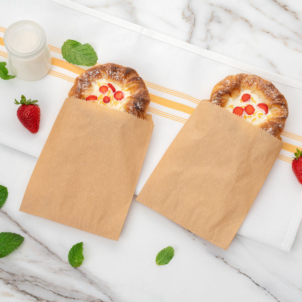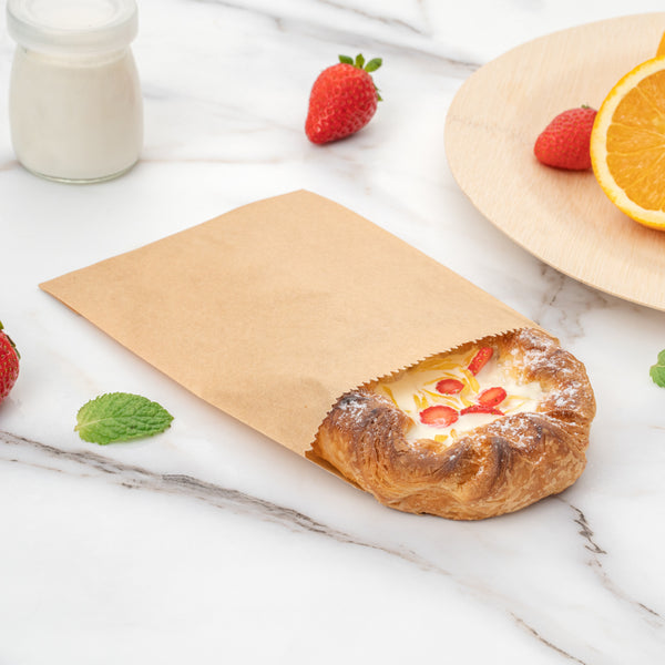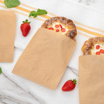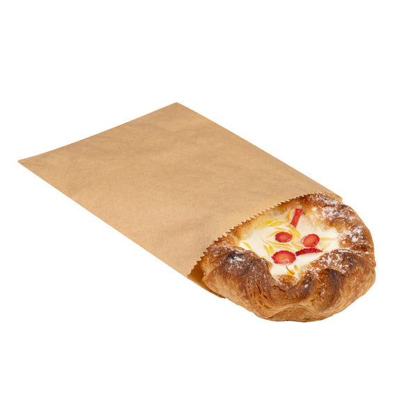 Effortlessly serve up snacks with our Bag Tek Kraft Paper Bags. Featuring an open-pouch design, these retail bags make it easy for customers to snack on food while on the move. With a greaseproof lining, these paper deli bags keep oils from seeping through and dirtying your customers' hands. The natural brown finish of these paper lunch bags gives your snack presentations a classic look. Made from kraft paper, these snack bags are biodegradable and recyclable so customers can easily dispose of them in an eco-friendly way after enjoying meals. These brown paper bags measure 7 inches in length and 5 inches in width. Sold in a 100 count box. This item will only degrade outside of the traditional solid waste stream.