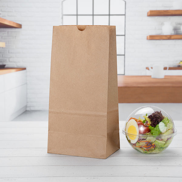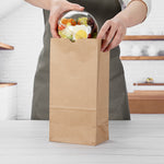 Our Bag Tek Kraft Paper Bags make it easy to take food on the go. Designed with a flat bottom, these paper deli bags stand upright on countertops to comfortably package leftovers at your restaurant or bakery. Featuring an open top, these retail paper bags can be folded down to keep food securely contained during transport. Constructed from premium kraft paper, these paper grocery bags are recyclable to meet the standards of your eco-conscious customers. With a brown finish, these kraft shopping bags give your take out packaging a classic look. Measuring 6 inches long by 4 inches wide by 11.75 inches tall, these paper deli bags can hold up to 8 pounds of your baked goods. Sold in a 100 count box.