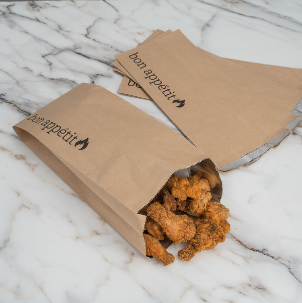 These foil bags have a greaseproof lining to ensure hands stay clean. You won't have to worry about oils seeping through during transport and creating unsightly greasy blotches. Bags will look perfect upon delivery!
