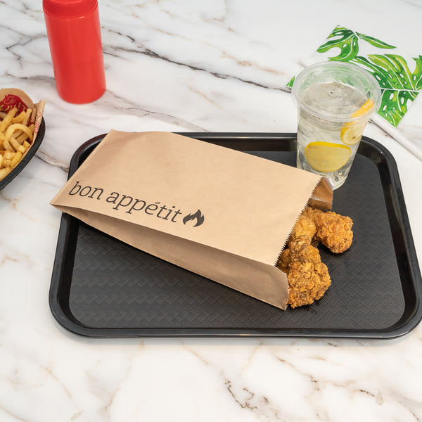 - "Bon Appetit" message adds a fun touch to your to-go orders