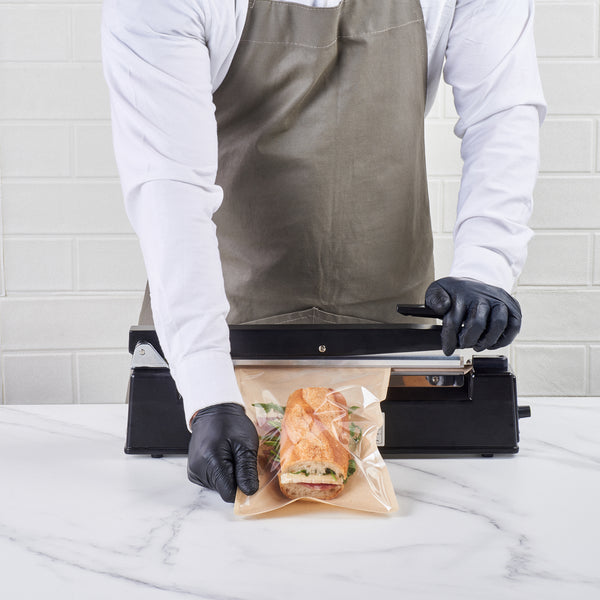 Keep an ample amount of snacks with you at all times with our Bag Tek Kraft Plastic Large Sandwich and Snack Bags. Featuring a heat sealable design, these food storage bags are airtight, keeping the content in the bags to remain fresh for longer. The clear window of these snack bags allows the customers to see what is inside and get the trail mix, candy mixes, or chocolate assortments that they like without opening the bag. These snack bags are greaseproof and do not let oils and grease penetrate, avoiding messes. The sturdy and durable construction of these sandwich bags makes them ideal for takeaways. Convenient to use, these plastic bags for candies can easily be disposed of after use. These bags for bakeries are disposable, making the disposal process easy. Each disposable snack bag measures 11.5 inches in length by 6.75 inches in width. Sold in a 100 count box.