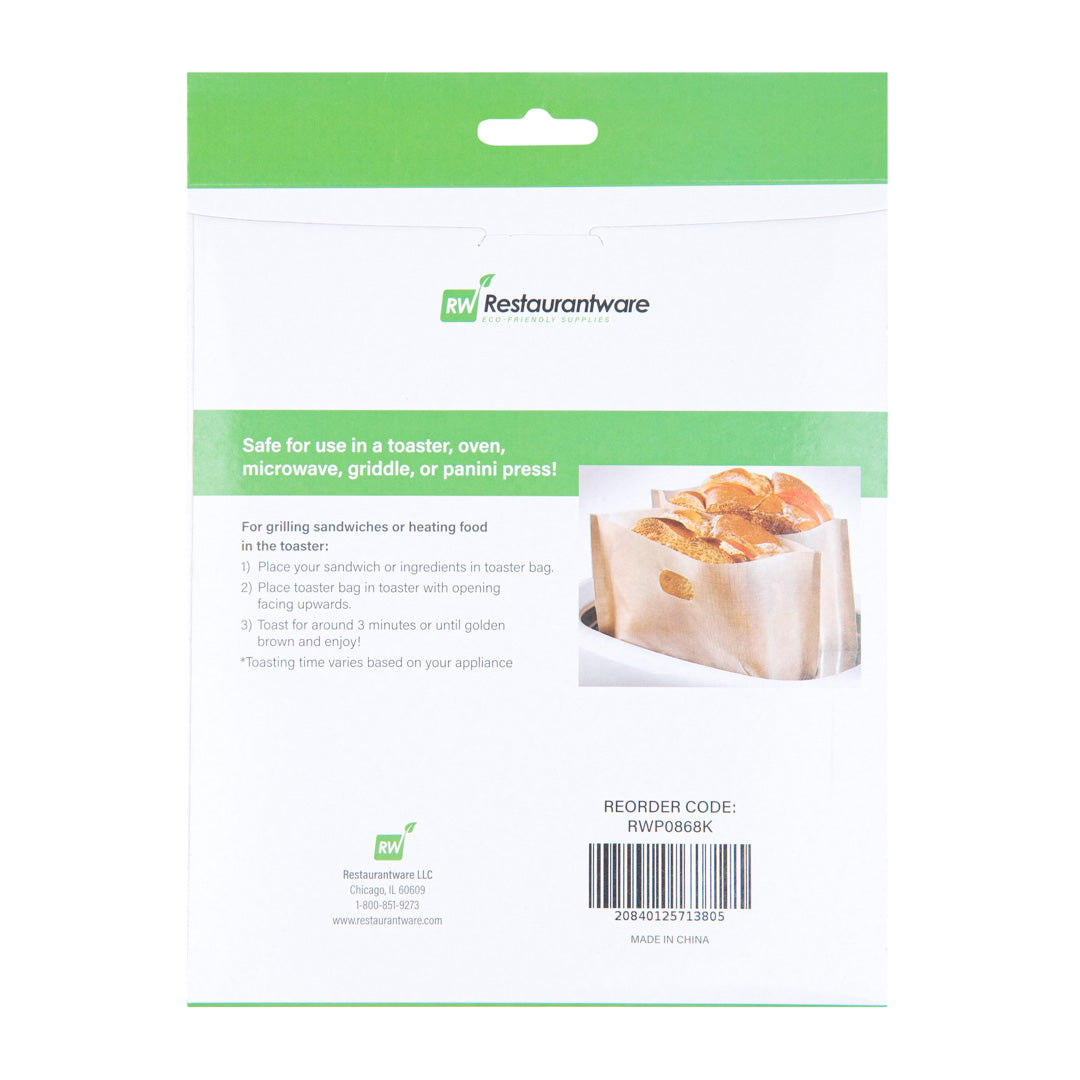 These toaster bags are ideal for a variety of hot or cold foods and can be used in several kitchen appliances such as toasters, ovens, microwaves, or panini presses. Useful for all of your needs!