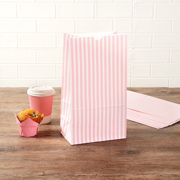 PINK AND WHITE STRIPE PAPER BAG - 12 LB