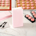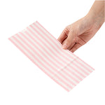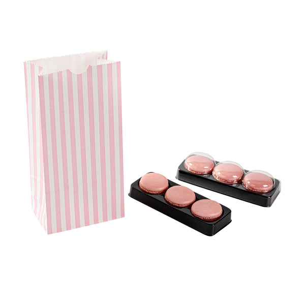 Elegantly package your takeout dishes in our Bag Tek Pink and White Stripe Paper Bags. Made from high-quality paper, these popcorn bags are tough enough for hefty meals. The delightful pink and white stripes of these disposable lunch bags adds a touch of elegance to your takeaway packages. With an open-top design, these take out bags makes packing easy and enables quick order checks. These paper deli bags are grease-resistant and can comfortably carry saucy dishes. To store leftovers conveniently, these merchandise bags are freezer-safe. These striped paper bags have a rectangular flat bottom and side gusset sleeves to provide space for an array of items. For a quick cleanup, these pink and white bags are disposable. Each paper bag has a capacity of 2 pounds and measures 4.25 inches in length by 2.25 inches in width by 8.5 inches in height. Shipped in a 100 count box.
