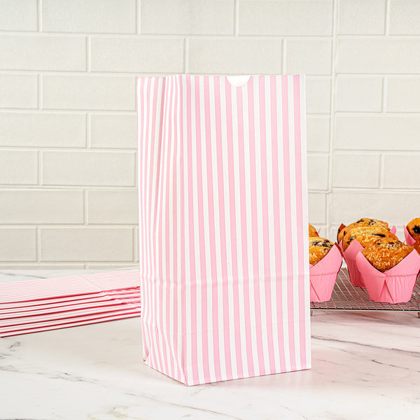 PINK AND WHITE STRIPE PAPER BAG - 8 LB