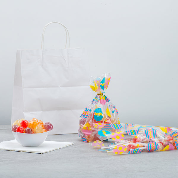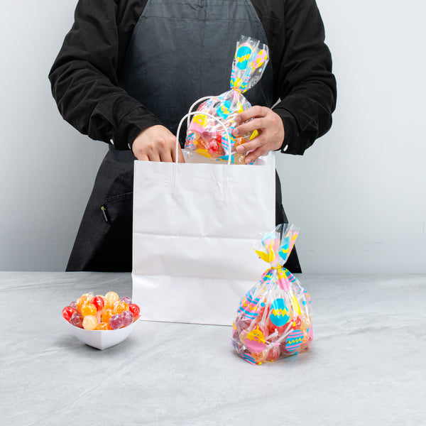 Add a delightful addition to any sweet shop or party setup with our Bag Tek Plastic Candy Bags. Perfect for packing small confections, these candy bags are designed with a charming Easter chicks print that adds a festive touch to any occasion. Crafted from durable PP plastic, these plastic candy bags are able to withstand the rigors of hearty packaging, ensuring your treats remain fresh and intact. These gusseted plastic bags provide extra space and stability for various sweets. Made from BPA-free plastic, these plastic favor bags are secure for use with food items. These treat bags are rectangle in shape, providing a classic and versatile look that suits any event or business. Equipped with a heat sealable feature, these gusseted plastic bags ensure your treats are securely stored. Measuring 5 inches in length by 3 inches in width by 11 inches in height, these party treat bags provide ample room for a generous amount of candy or other small treats. These candy bags are also compatible with twist ties (SKUs: RWP1202 and RWP1203), offering an additional option for secure closure. Sold in a 100 count box. Twist ties are available and sold separately.