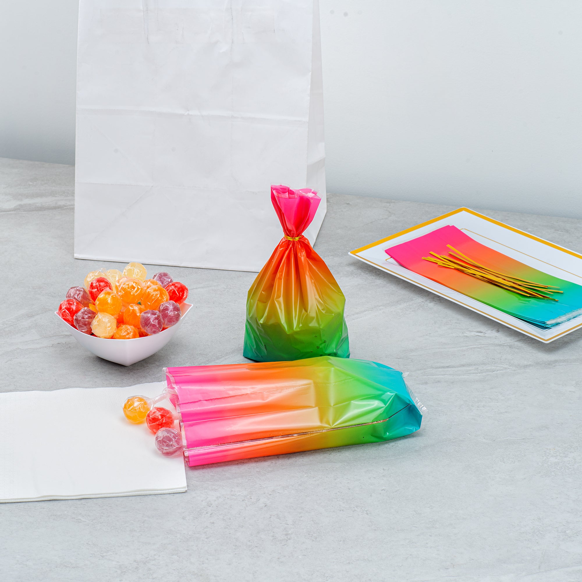 PLASTIC CANDY BAG - RAINBOW OMBRE, GUSSETED