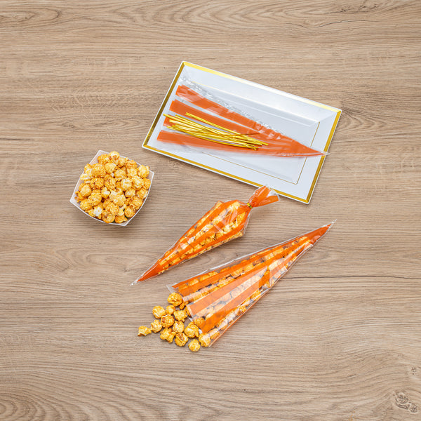 Whether you prefer the classic rectangle look or the playful cone shape, these candy bags offer the perfect canvas for your sweet creations, ensuring a delightful and visually appealing presentation. The rectangle plastic bags are gusseted for extra room for your treats.