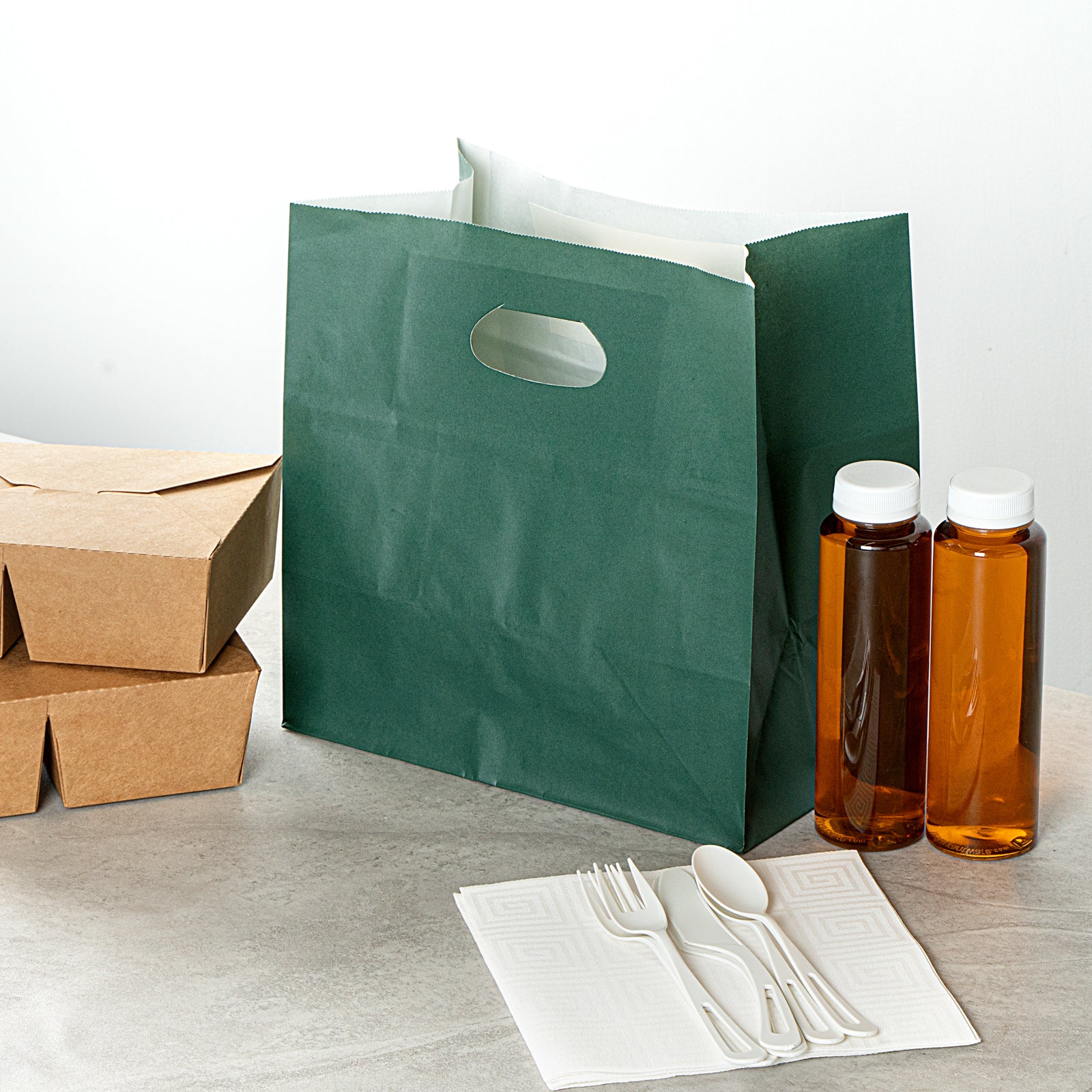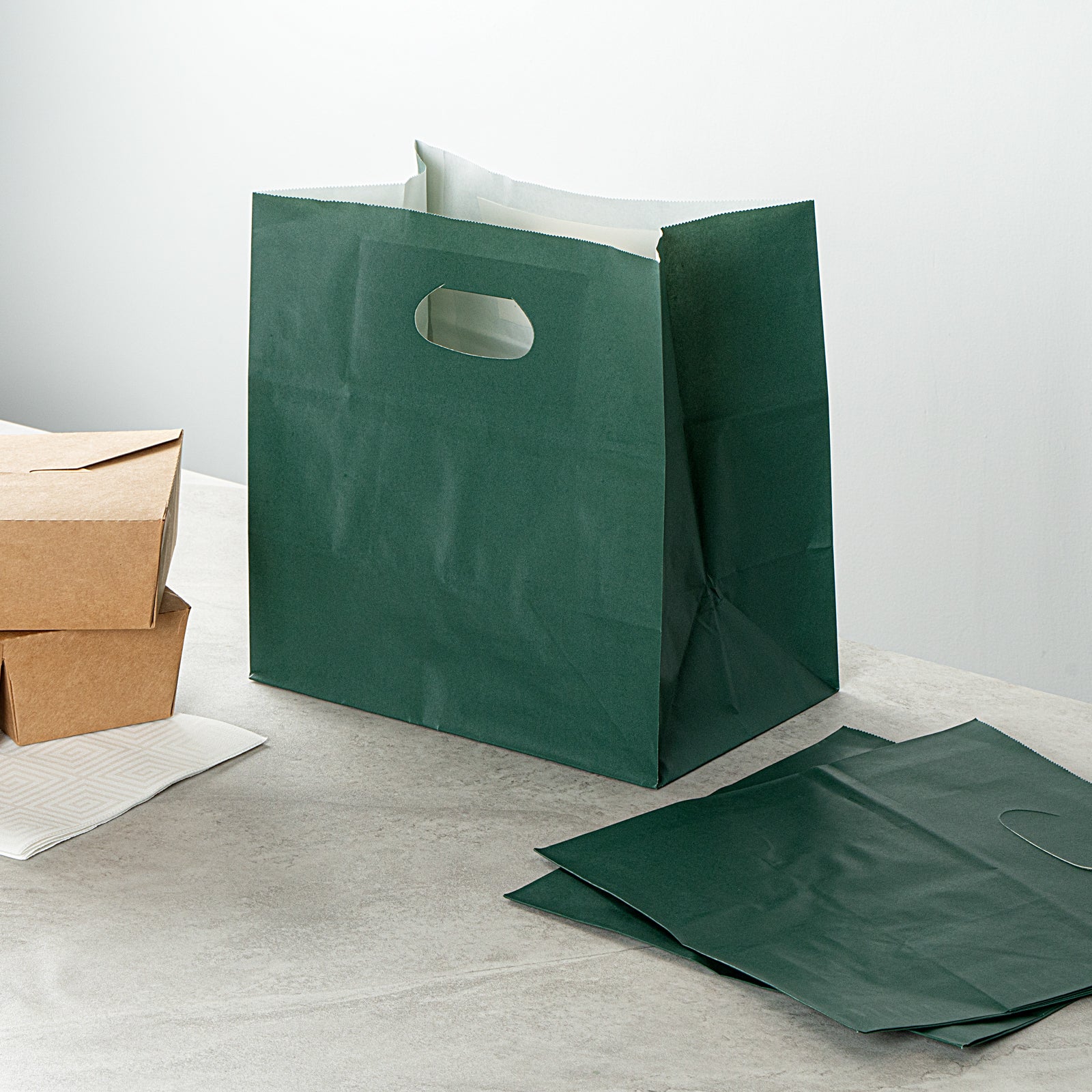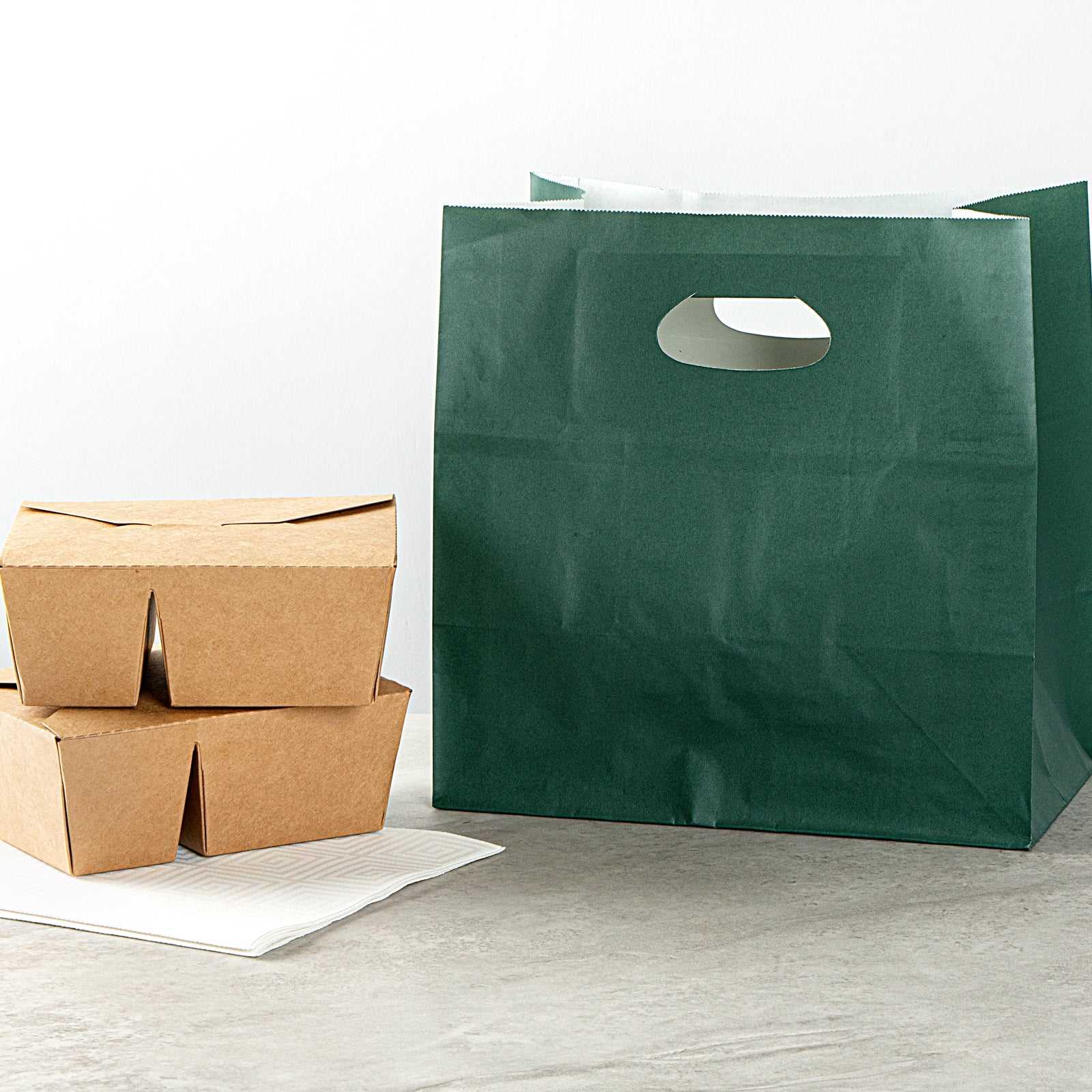RECTANGLE FOREST GREEN PAPER TAKE OUT BAG - WITH HANDLES