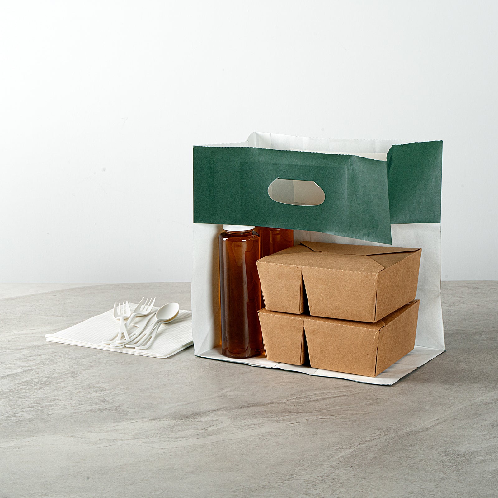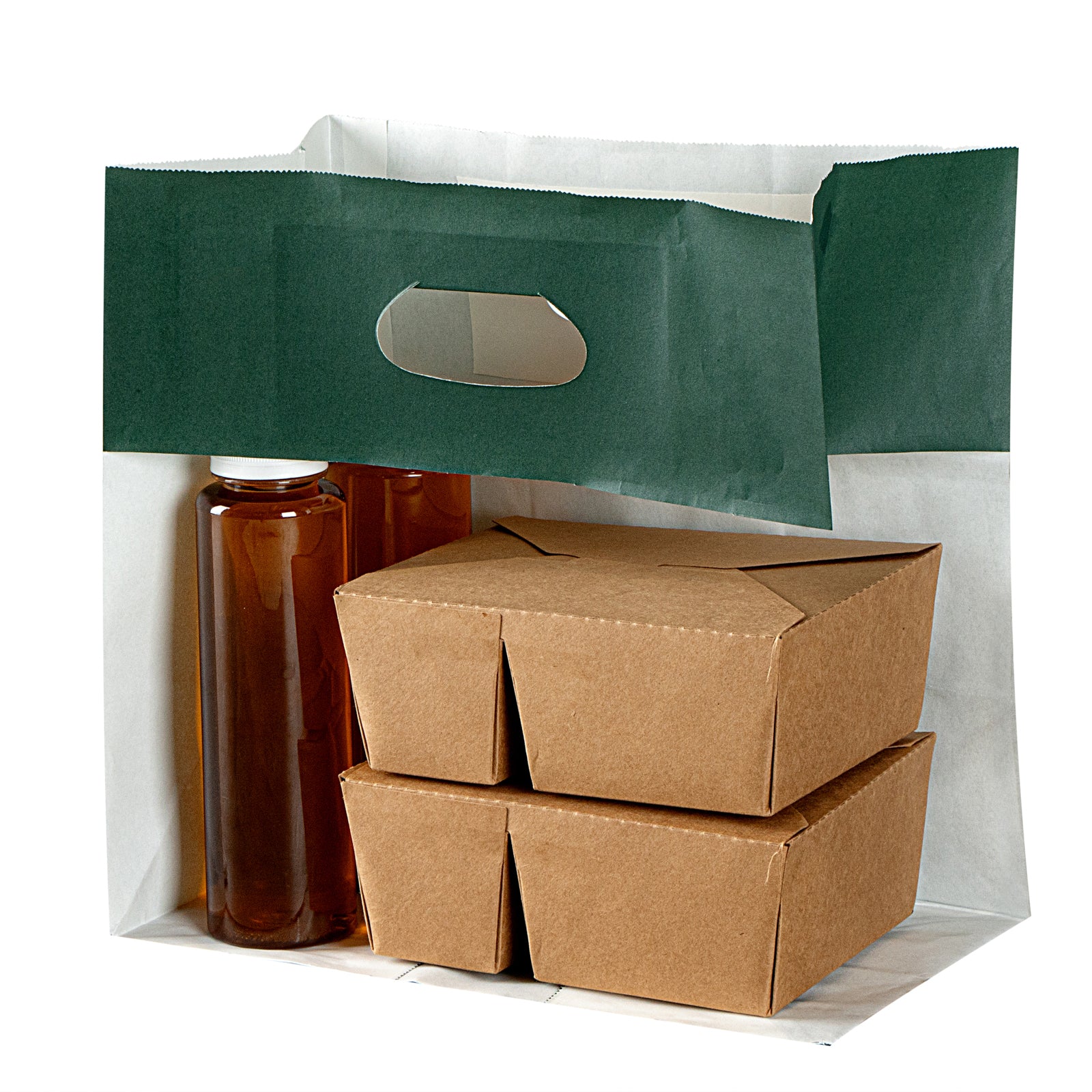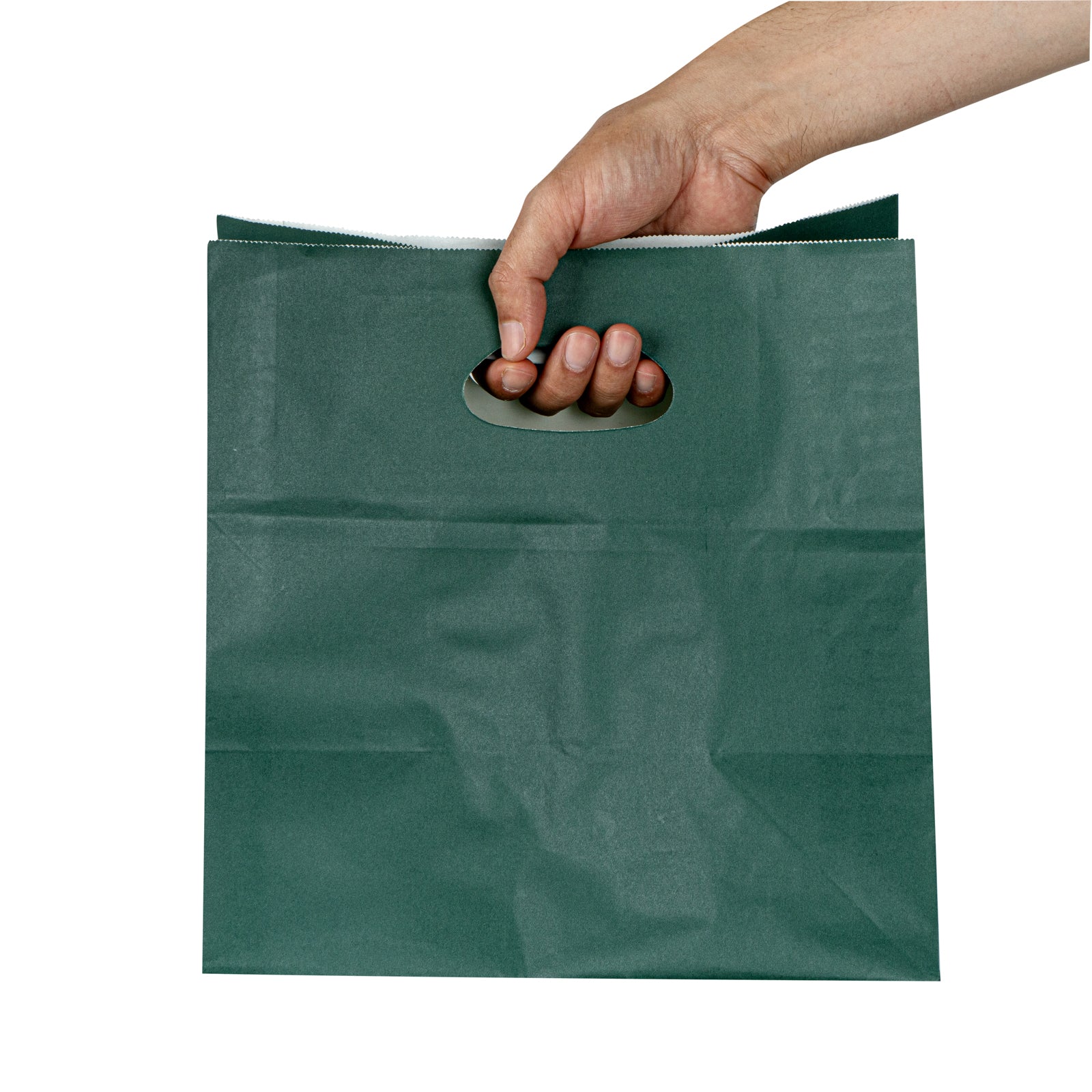 RECTANGLE FOREST GREEN PAPER TAKE OUT BAG - WITH HANDLES