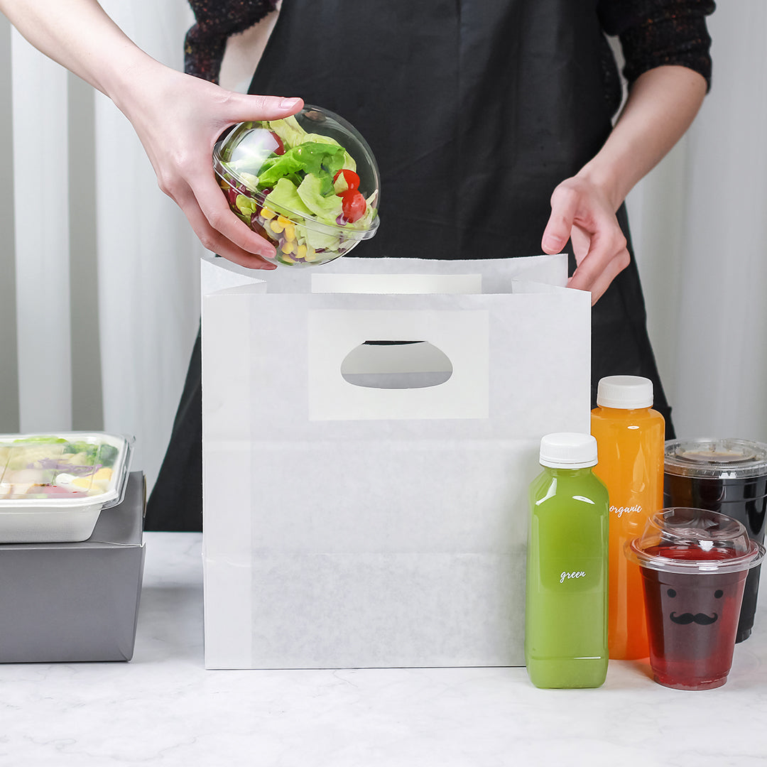 - Cut-out handles enable comfortable carrying of several food items for delivery