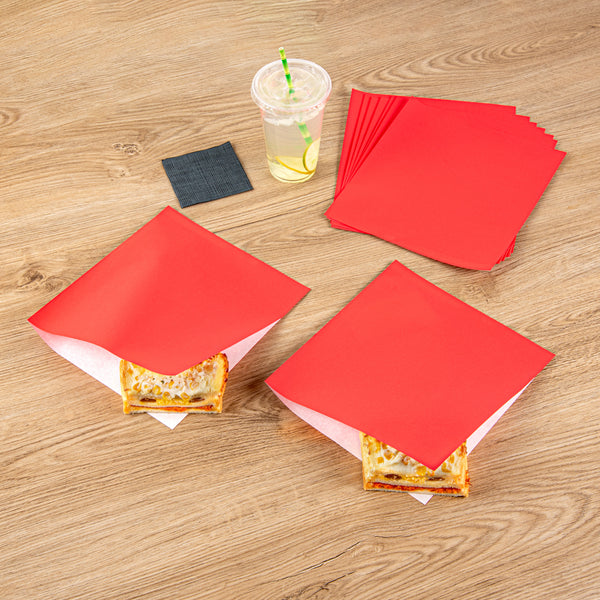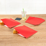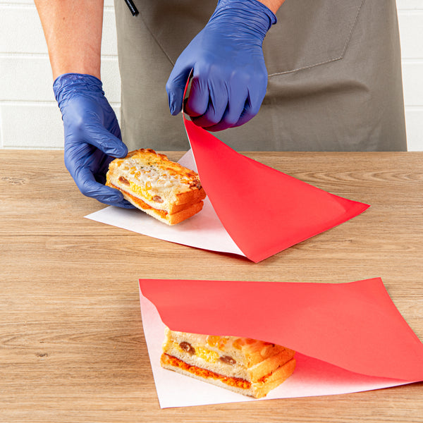 Share your snacks in Bag Tek Red Paper Large Double Open Bags. Crafted from premium paper, these deli wrap liners are a dual-open design perfect for quick snacks or for serving as cone basket liners. The vibrant red finish of these double-open bags elevates the visual appeal of your food presentation. Designed with greaseproof PE lining, these sandwich wrappers resist oil or grease from seeping through and creating a mess for an elevated eating experience. These paper snack wraps can be used in the microwave for up to 2 minutes making reheating meals a breeze. To align with eco-friendly practices, these microwave-safe food bags are recyclable. Each deli paper sheet measures 10 inches in length by 9 inches in width. Shipped in a 100 count box.