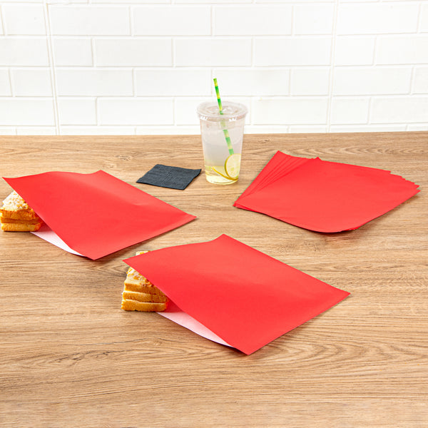 RED PAPER LARGE DOUBLE OPEN BAG - GREASEPROOF