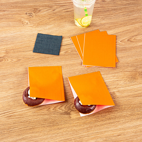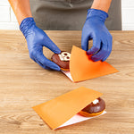 Maintain cleanliness with grease-free sandwich packaging. Greaseproof Orange Paper Sandwich Bags feature a greaseproof lining that prevents oils from seeping through, ensuring hands and surfaces remain spotless. Designed with a double open feature, these sandwich bags simplify the serving and carrying of sandwiches and chips, enhancing operational efficiency in busy kitchens. The vibrant tangerine orange color elevates presentation, making pastries and snacks more appealing to customers. Constructed from tear-resistant paper, these greaseproof sandwich bags guarantee secure transport of snack items, reducing the risk of spills during delivery. Measuring 6.25 inches by 4.75 inches, these compact bags are ideal for bakeries and cafes looking to package small pastries or sandwiches for takeout. Elevate your foodservice operation with reliable, eye-catching pastry bags. Each order includes 100 Greaseproof Orange Paper Sandwich Bags.