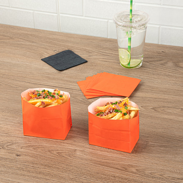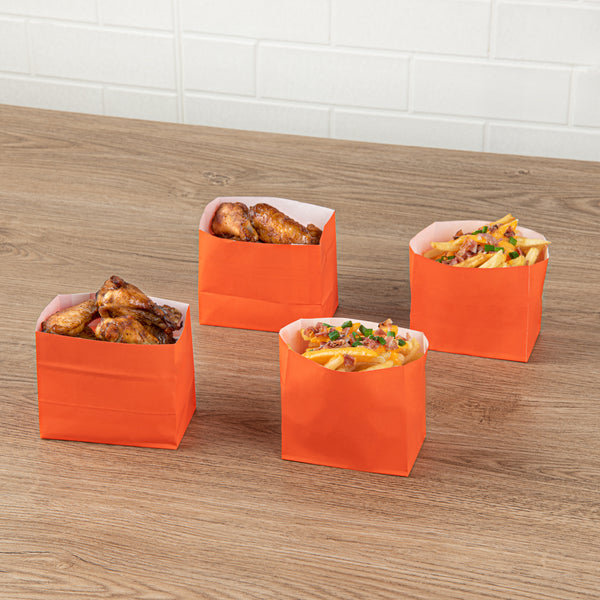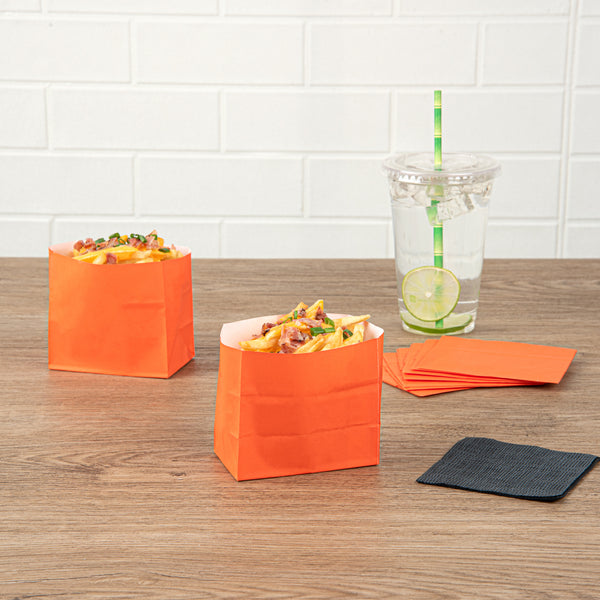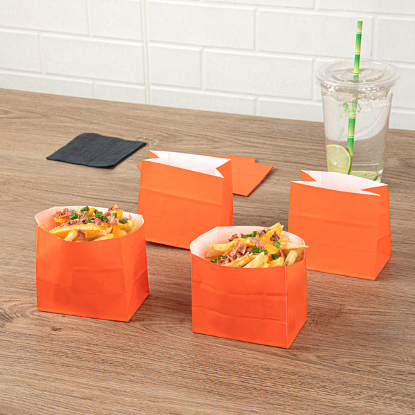 Enhance your snack presentation with vibrant packaging. Bag Tek 4 Oz Paper Snack Bags feature a striking tangerine orange color that elevates the visual appeal of your offerings, making them irresistible to customers looking for stylish paper snack bags. Made from recyclable material, these bags support eco-friendly food operations, aligning with sustainability goals through biodegradable snack bags. With dimensions of 3.75 inches by 2.25 inches by 3.75 inches, these bags are perfectly sized for serving small portions, helping to control serving sizes and reduce waste. The cold and hot food-friendly construction allows you to offer versatile menu options, from pastries to candies, without compromising on bag performance. Don’t miss the chance to optimize your packaging with these bags. Each order includes 100 Bag Tek 4 Oz Paper Snack Bags.
