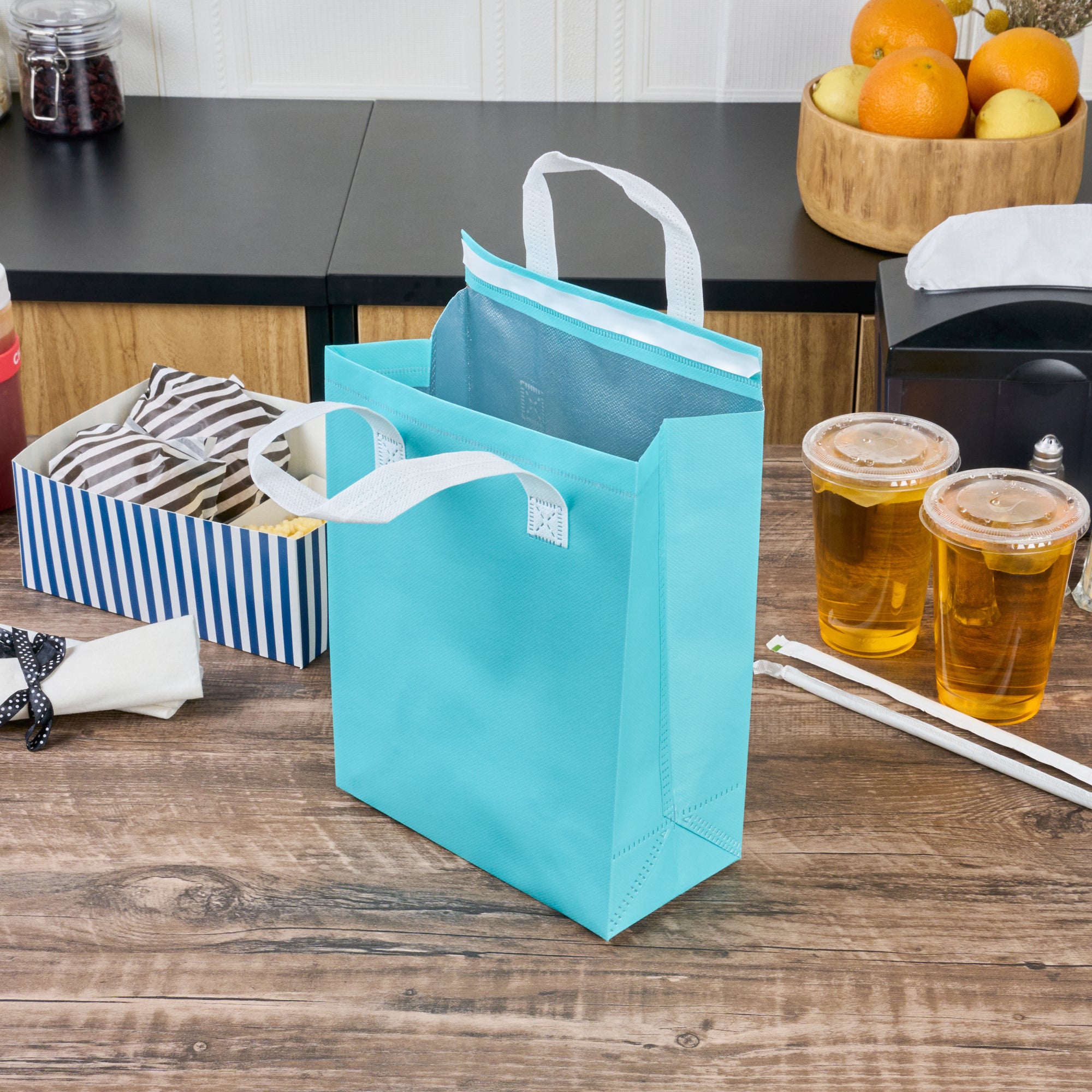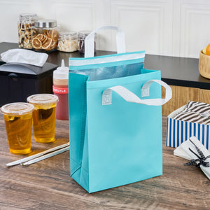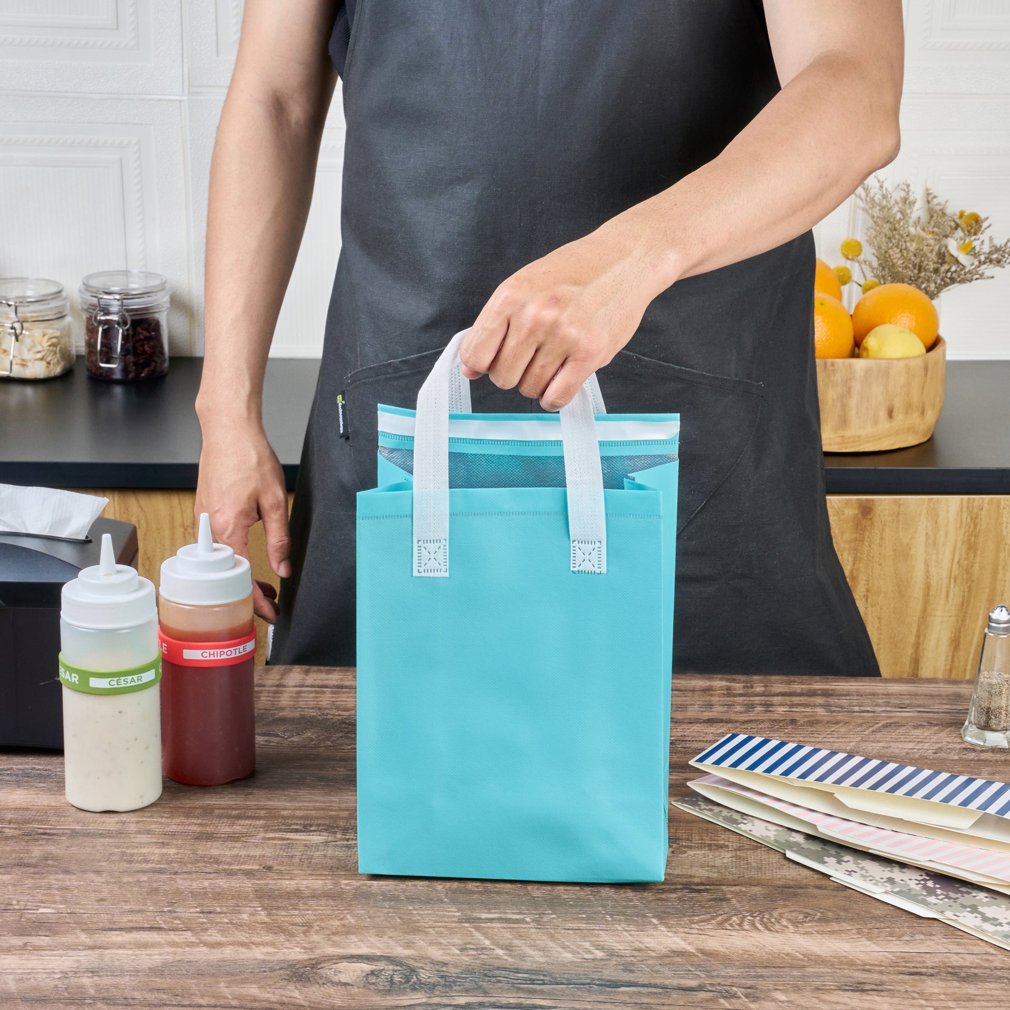 Ensure safe and temperature-controlled deliveries with ease. The Bag Tek Teal Nonwoven Thermal Delivery Bags boast advanced insulation technology that maintains ideal food temperatures for hours, ensuring dishes arrive as intended. These thermal delivery bags feature a spacious design, accommodating multiple foodservice items with a dimension of 8.25 inches in length, making them a versatile choice for various menu offerings. The tamper-evident design provides a clear indication if the bag has been opened, guaranteeing food safety during transport. Crafted from durable nonwoven material, these insulated cooler bags are lightweight and foldable, allowing for easy storage when not in use. Sturdy handles ensure stable and easy transport of goods, making these food delivery bags a reliable choice for catering events or takeout services. Enhance your delivery operations with these efficient bags. Each order includes 25 Bag Tek Teal Nonwoven Thermal Delivery Bags.