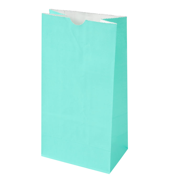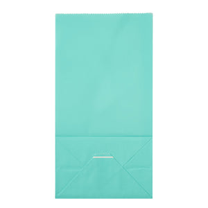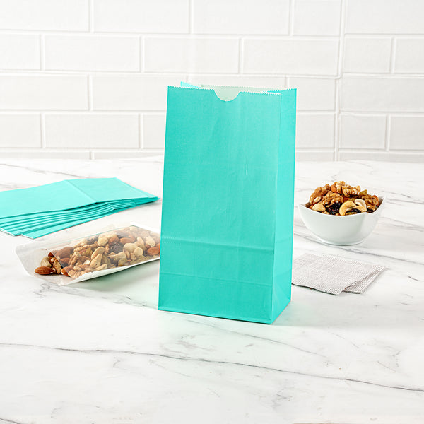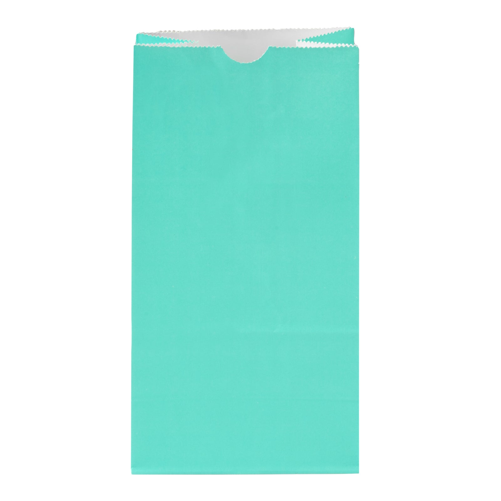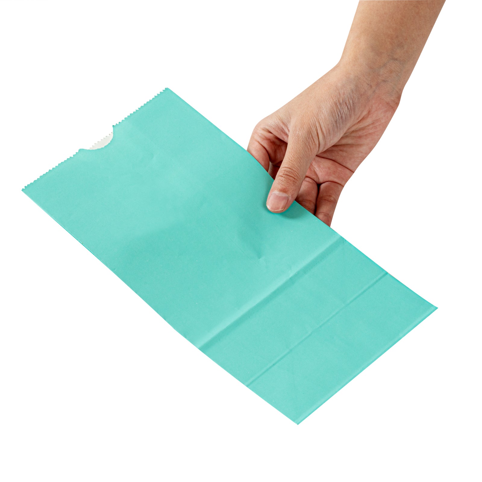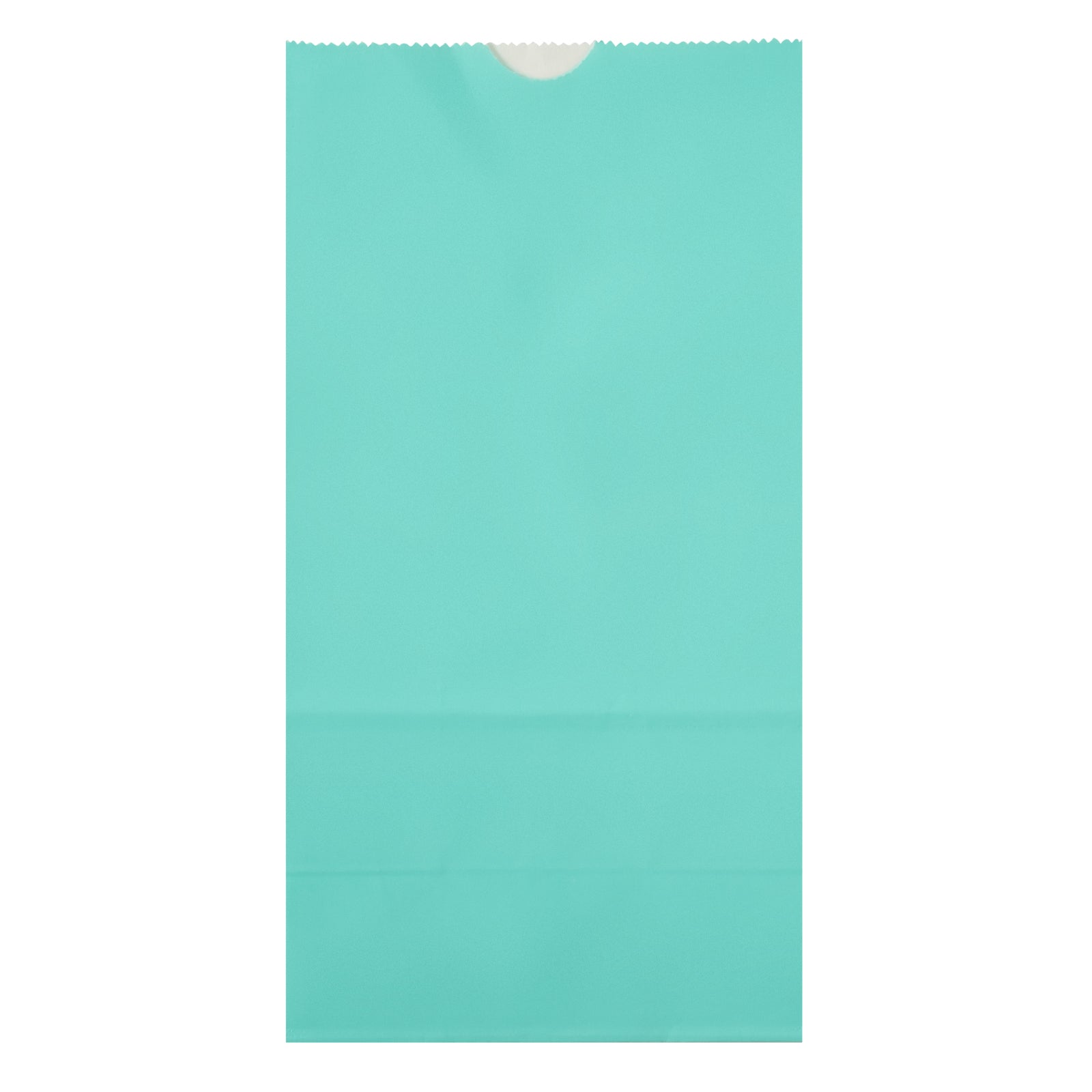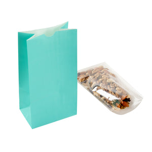 Elevate your takeaway packaging with our Bag Tek Turquoise Paper Bags. Made from premium paper, these popcorn bags are durable and have a grease-resistant coating to prevent leaking oils or sauces . The stylish turquoise finish of these disposable lunch bags gives a modern twist to your takeout orders. These take out bags have an open-top design that ensures you can fold it to secure the contents within during transit. To easily store your leftovers, these paper deli bags are freezer-safe. With a rectangular flat bottom, these turquoise paper bags can stand upright on tables, facilitating easy packing. These paper take out bags are disposable to shorten your cleanup process. The gusset sleeves on the sides of these grocery bags can be expanded to provide extra packing space. Each disposable paper bag has a capacity of 4 pounds and measures 5 inches in length by 3.25 inches in width by 9.5 inches in height. Shipped in a 100 count box.