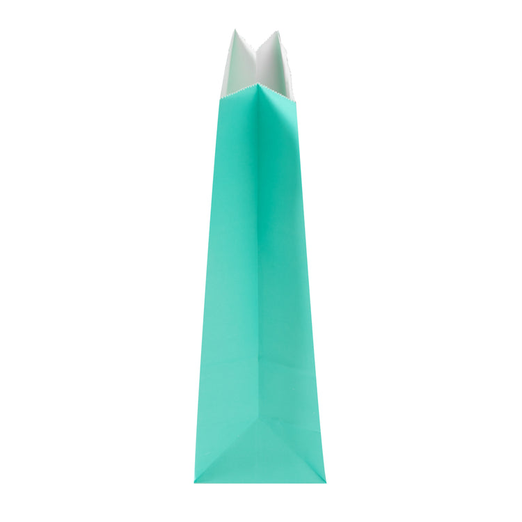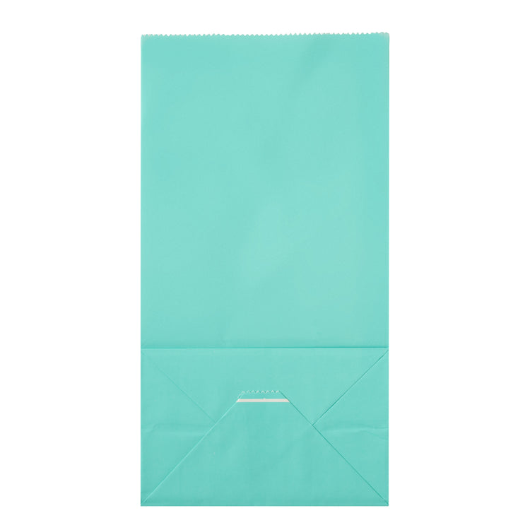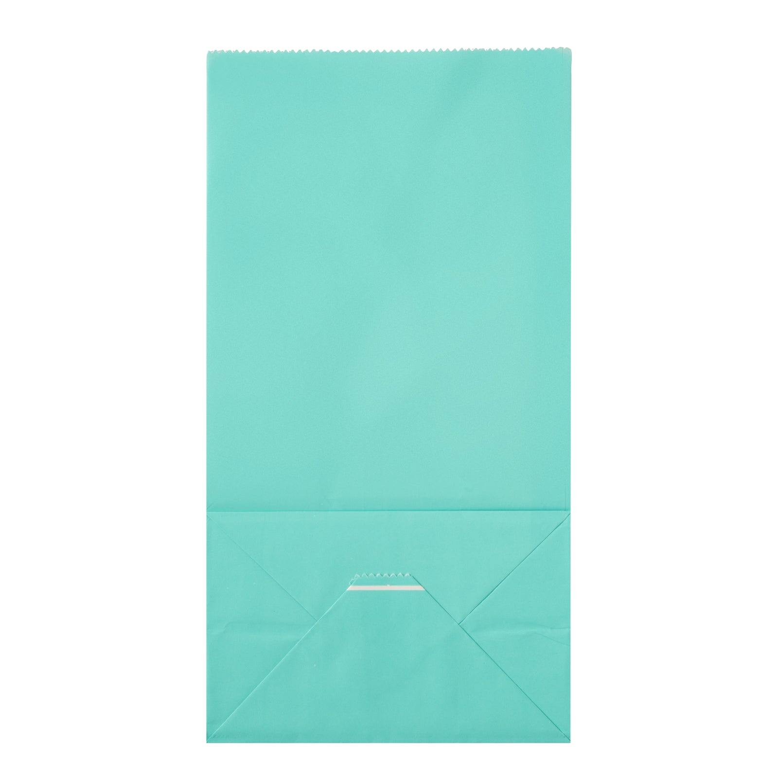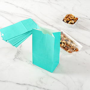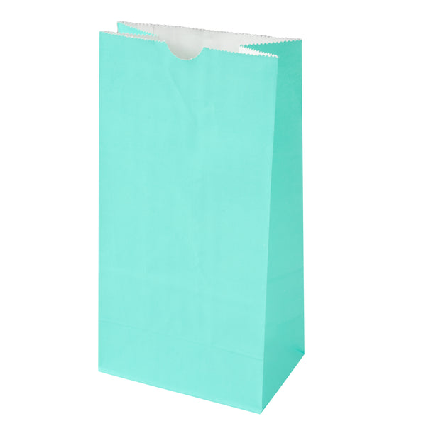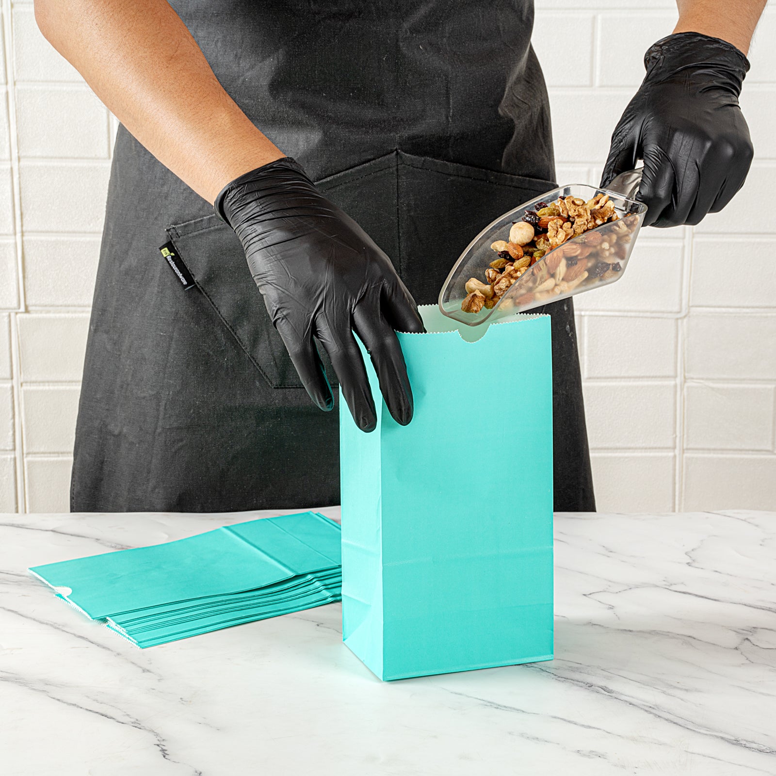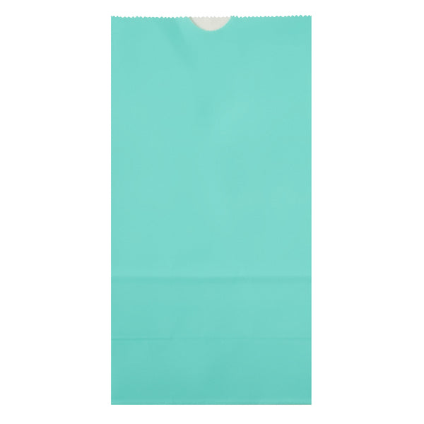 Elevate your takeaway packaging with our Bag Tek Turquoise Paper Bags. Made from premium paper, these popcorn bags are durable and have a grease-resistant coating to prevent leaking oils or sauces . The stylish turquoise finish of these disposable lunch bags gives a modern twist to your takeout orders. These take out bags have an open-top design that ensures you can fold it to secure the contents within during transit. To easily store your leftovers, these paper deli bags are freezer-safe. With a rectangular flat bottom, these turquoise paper bags can stand upright on tables, facilitating easy packing. These paper take out bags are disposable to shorten your cleanup process. The gusset sleeves on the sides of these grocery bags can be expanded to provide extra packing space. Each disposable paper bag has a capacity of 4 pounds and measures 5 inches in length by 3.25 inches in width by 9.5 inches in height. Shipped in a 100 count box.