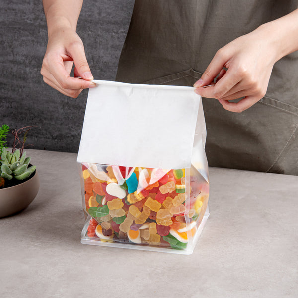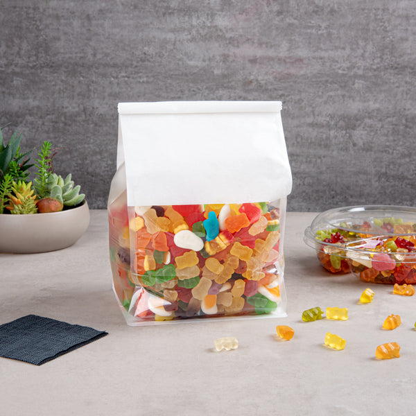 With a flat bottom design, these bags stand upright on their own to help streamline your packaging process. Perfect for showcasing your grab-and-go items on dessert tables or bakery displays.