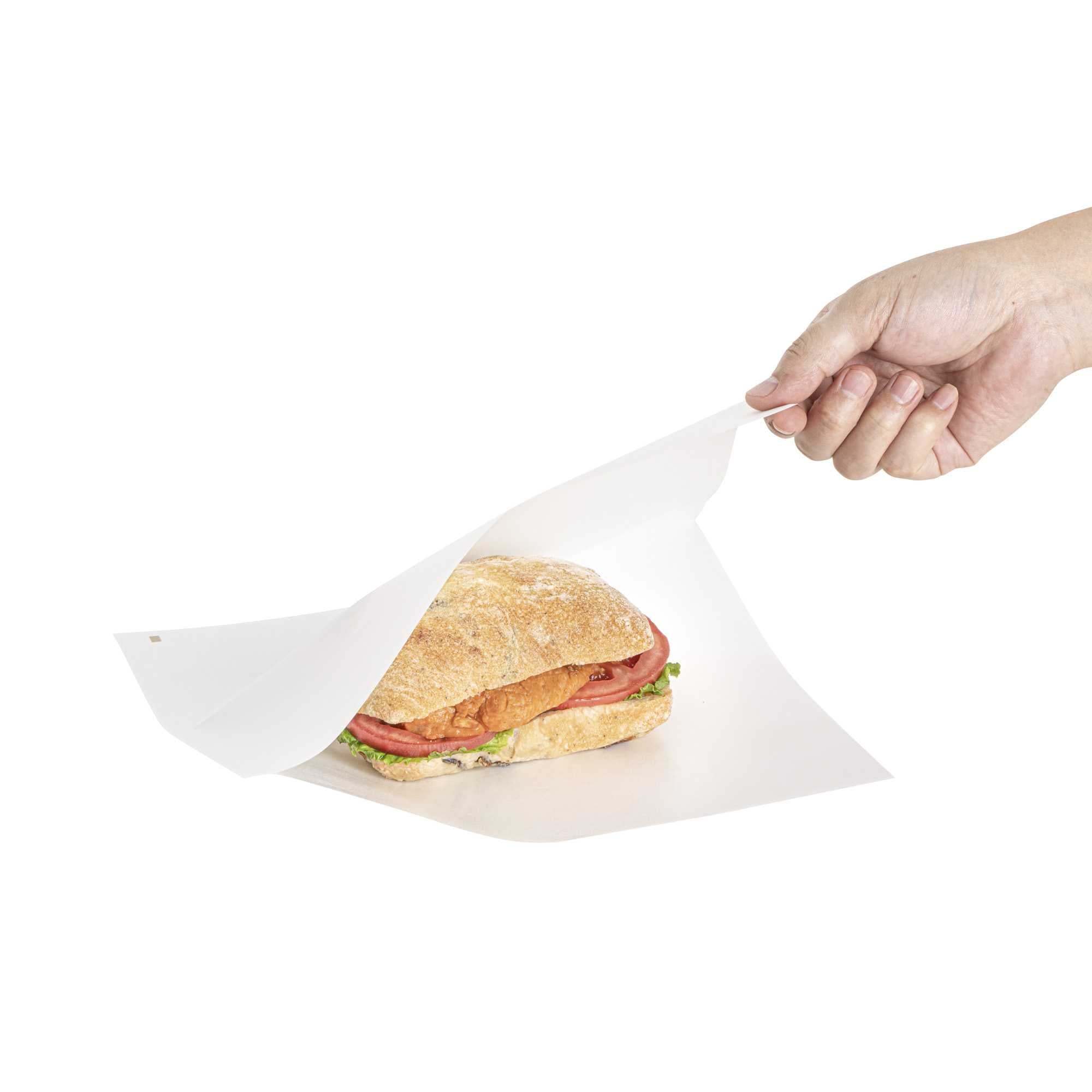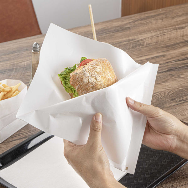 Take chicken tenders and fries on the go using our Bag Tek White Paper Large Double Open Bags. With a double-open design, these disposable paper bags are perfect for quickly assembling meals and making foods easy to hold for guests. These large sandwich bags are greaseproof to prevent oily splotches from creating messes. Great for heating up pretzels, burgers, or fries, these paper food bags are microwave-safe for up to 2 minutes. The tear-resistant construction of these disposable bags is great for avoiding spills and messy accidents when full of foods. These paper food bags are recyclable for an easy and eco-friendly way to dispose of meals. With a classic white finish, these disposable paper bags add style to to-go food orders. These large sandwich bags measure 10 inches in length by 9 inches in width. Sold in a 100 count box.