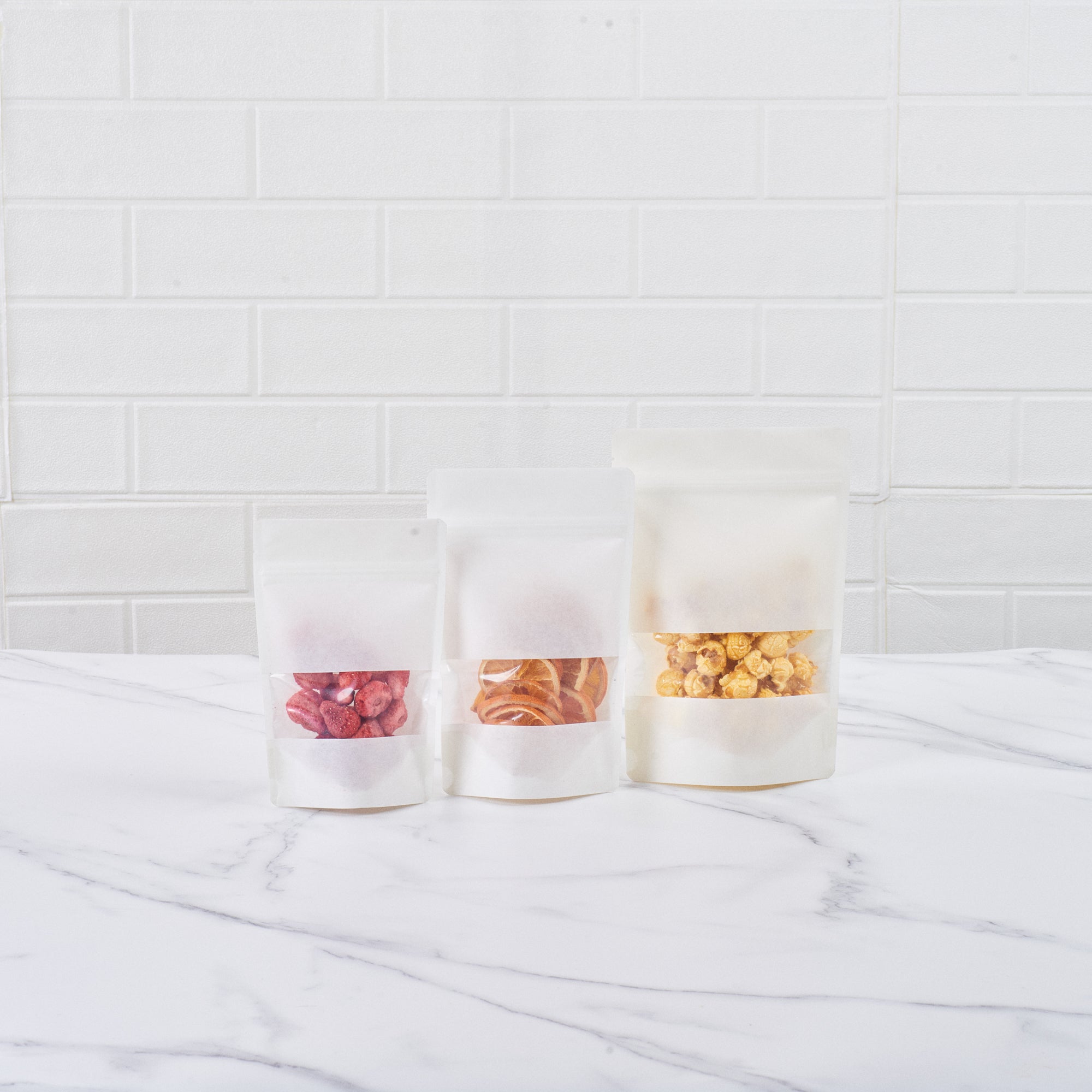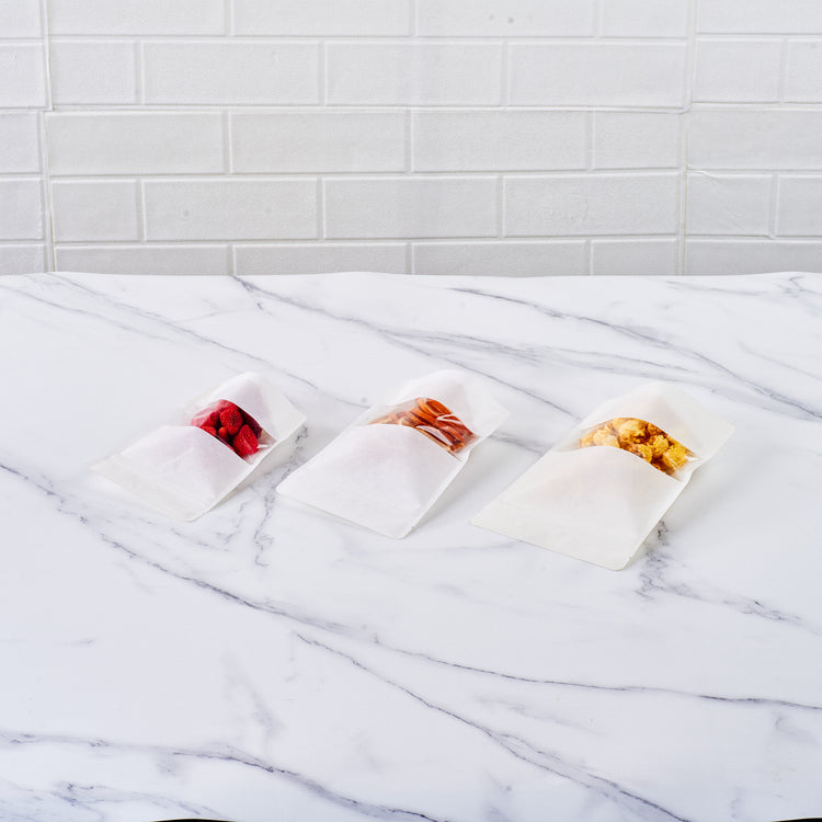 Elegantly display sweets on your shelf with our Bag Tek Rectangle White Plastic Medium Window Bags. These candy goodie bags are heat sealable to prevent tampering at your deli, bakery, or catering service. Featuring a transparent window, these heat sealable bags draw customers' eyes to your multi-colored gummies. With a white finish, these food grade plastic bags give your snack presentations a sophisticated and classic look. Constructed from high-quality plastic, these candy goodie bags are recyclable to shorten your cleaning process after service hours. These treat bags are tear-resistant to keep food safe from dust. Great for avoiding messy spills, seal these deli bags with our heat sealers (SKU: RWT0243 or RWT0244) to keep confectionery expertly contained. Measuring 8 inches long by 5 inches wide by 1.75 inches in height, these plastic food bags are sold in a 100 count box.