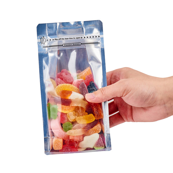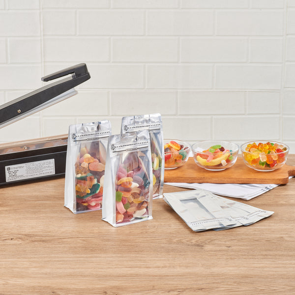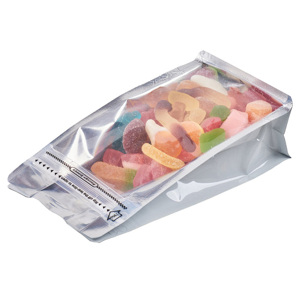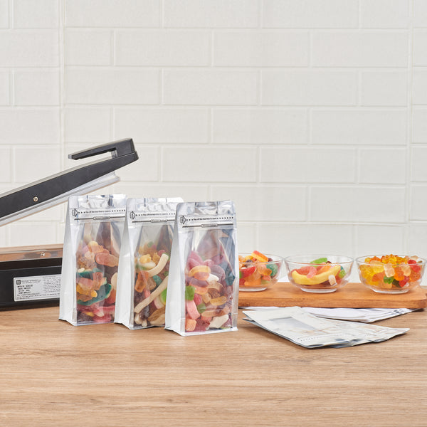 Make a great impression on your customers with our Bag Tek White Plastic Small Snack Bag. These plastic storage bags are heat sealable and also feature a zip lock closure to ensure the freshness of the food stays for a long time. Made with high-quality and durable plastic, these plastic pouches for dry snacks do not tear easily. With their airtight feature, these zip lock bags are impermeable to humidity and moisture and also not letting oils spill out of the packet. The side gussets and flat base of these plastic pouches allow these heat seal pouches to hold a sufficient amount of snacks and stand upright without any support. Featuring a clear window, the contents inside these plastic packaging bags are visible to the customers without opening the package. With a white finish, these plastic storage pouches blend in with any type of table decor. Each plastic snack bag measures 8 inches in length by 4 inches in width by 2.5 inches in height. Sold in a 100 count box.