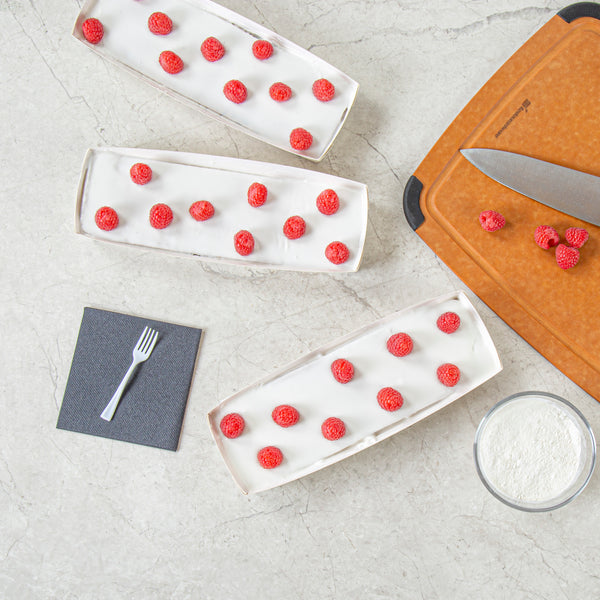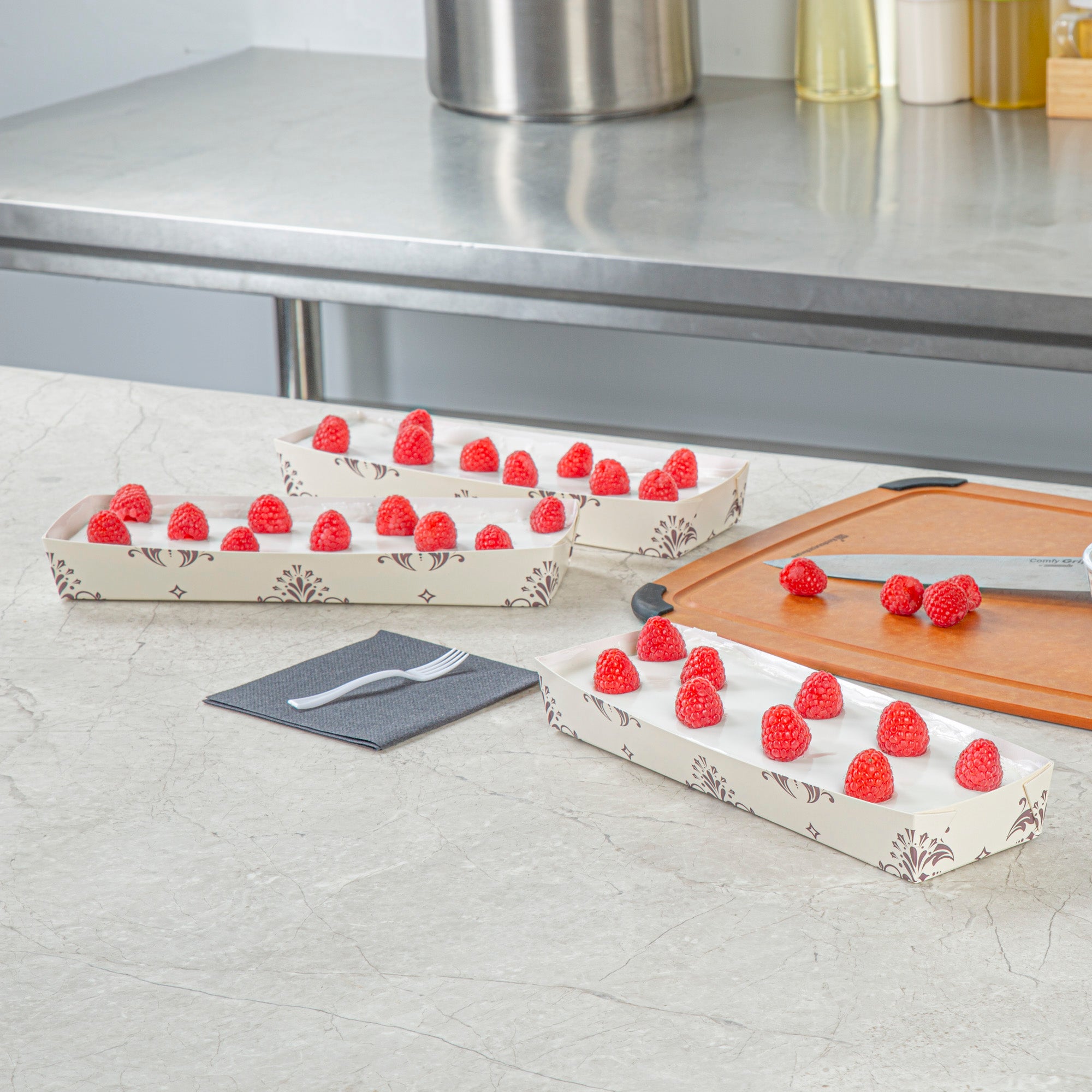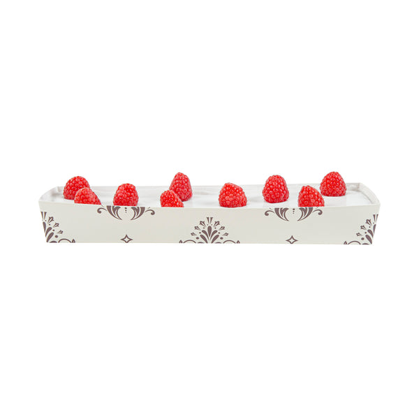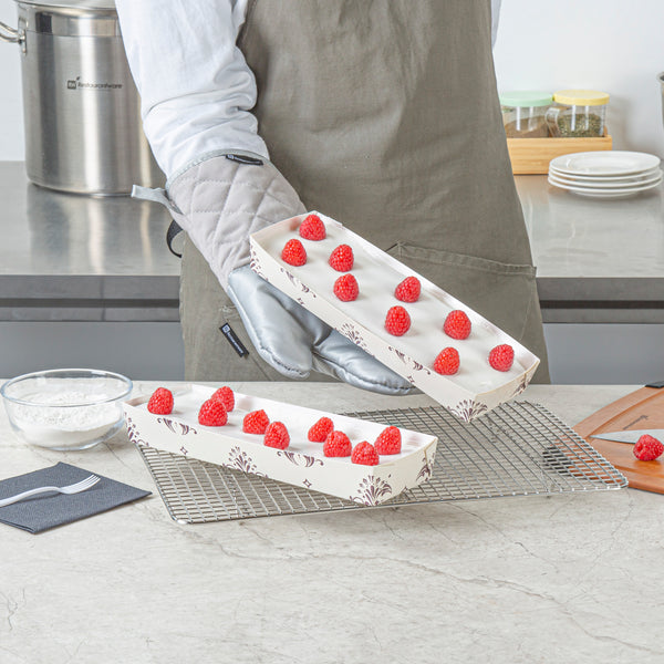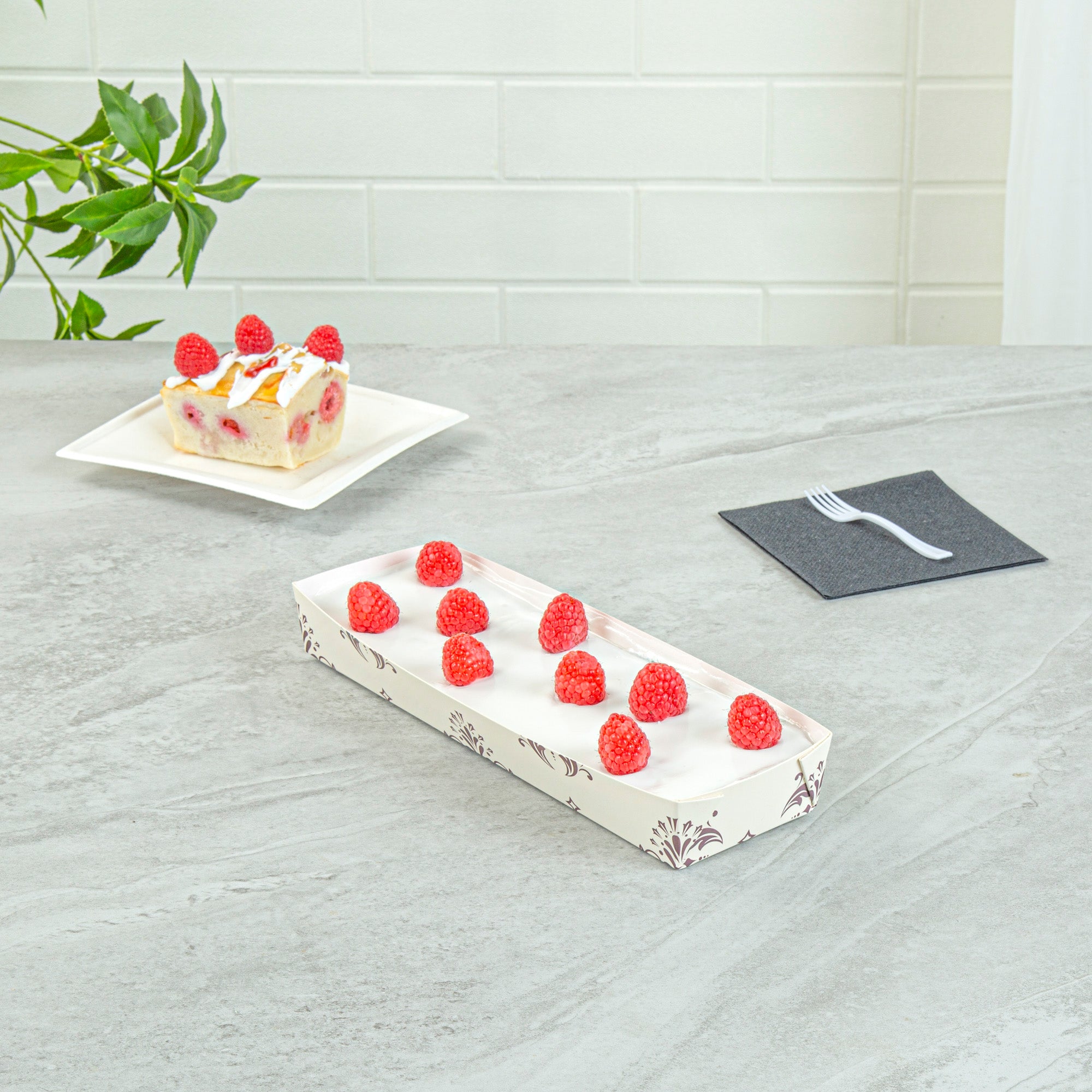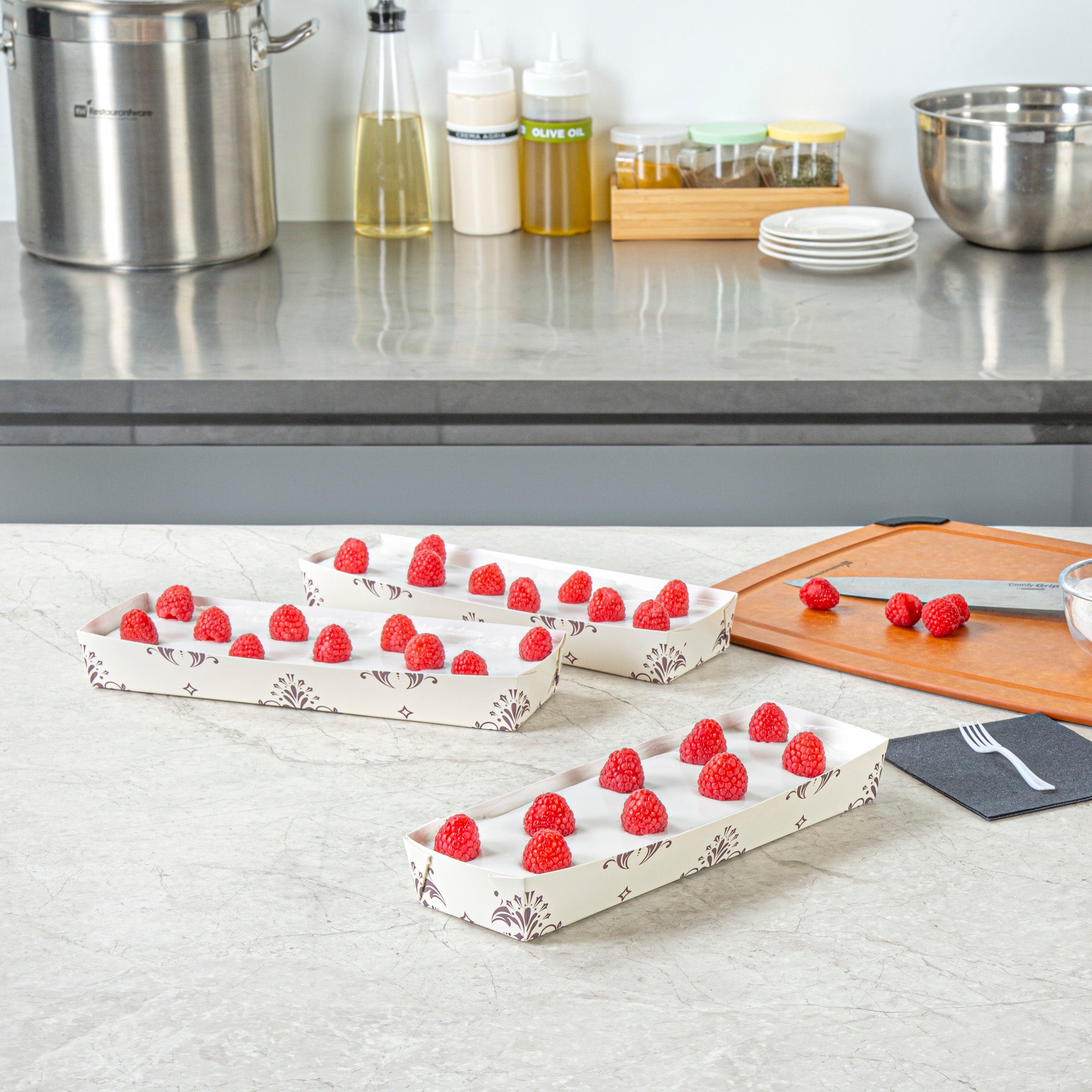 Streamline your baking process with our versatile disposable loaf pan. The Bake Tek Oven-Safe Disposable Loaf Pan is expertly crafted from paper, measuring 10.7 inches in length and 3.3 inches in width, to accommodate your baking needs. Its reliable oven-safe design up to 390F saves valuable time, ensuring your quick breads and pound cakes bake to perfection. With a grease-resistant construction, this pound cake mold effectively prevents leakage, maintaining the integrity of your baked creations. Ideal for busy foodservice environments, this oven-safe paper mold is also freezer and microwave safe, offering diverse application possibilities for any establishment. Its attractive beige color with a floral background enhances presentation, seamlessly blending with any decor. Whether you're operating a bakery, café, or grab-and-go establishment, this recyclable mold delivers both elegance and practicality. Each order includes 100 Bake Tek Oven-Safe Disposable Loaf Pans.