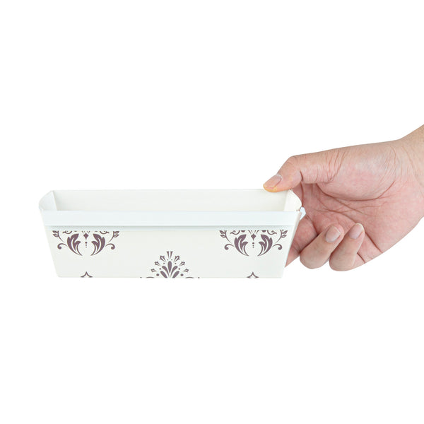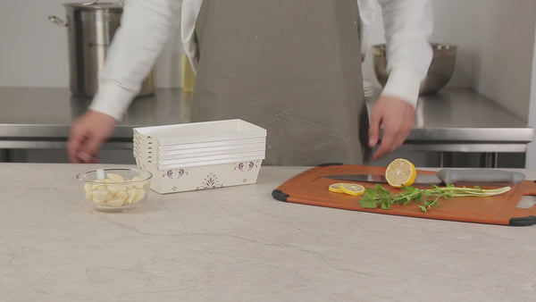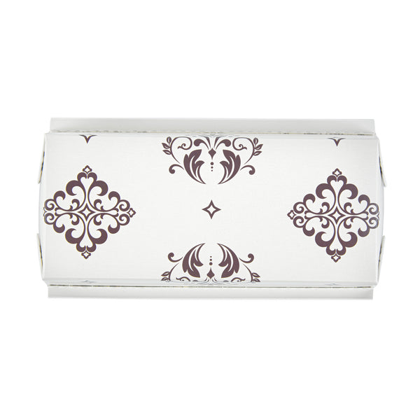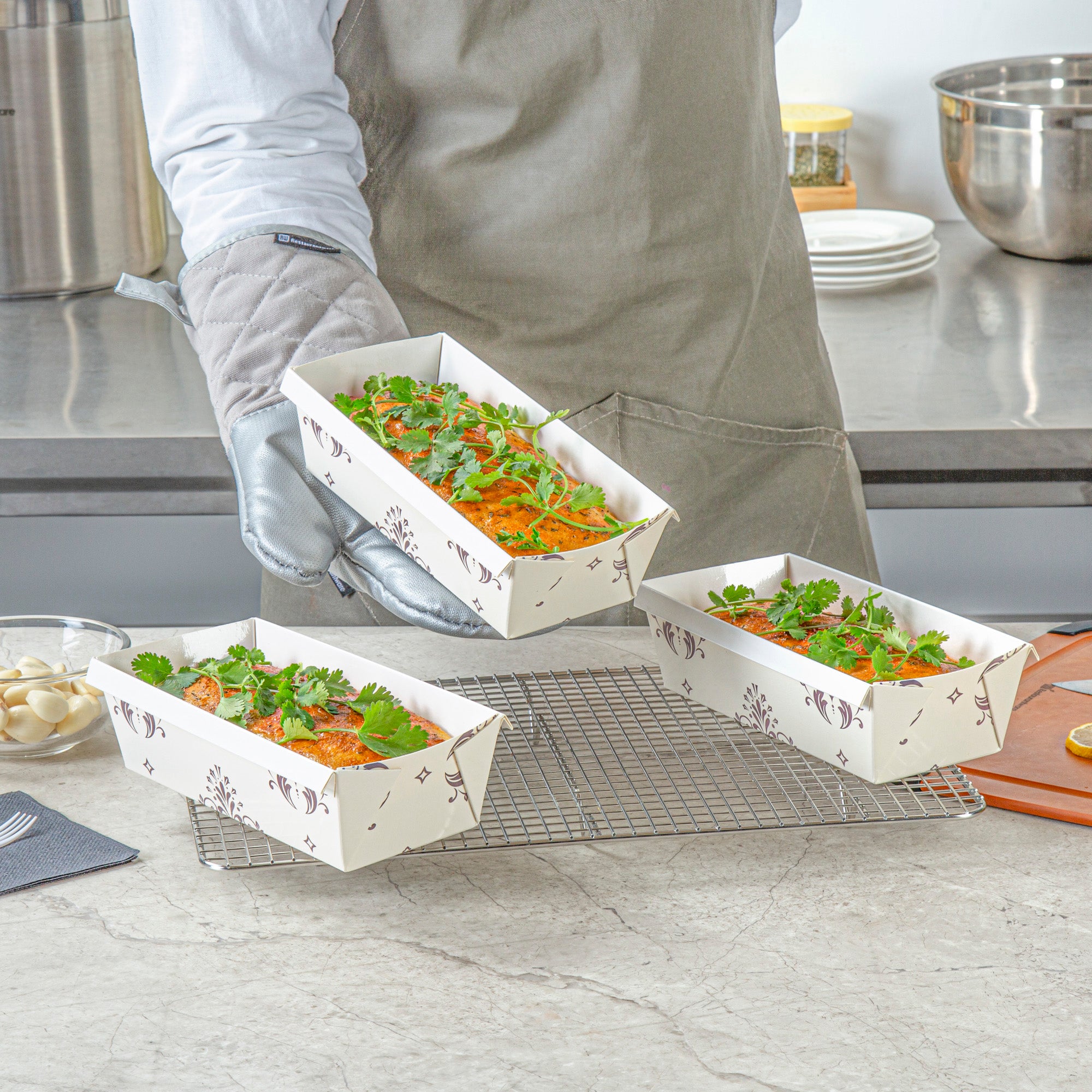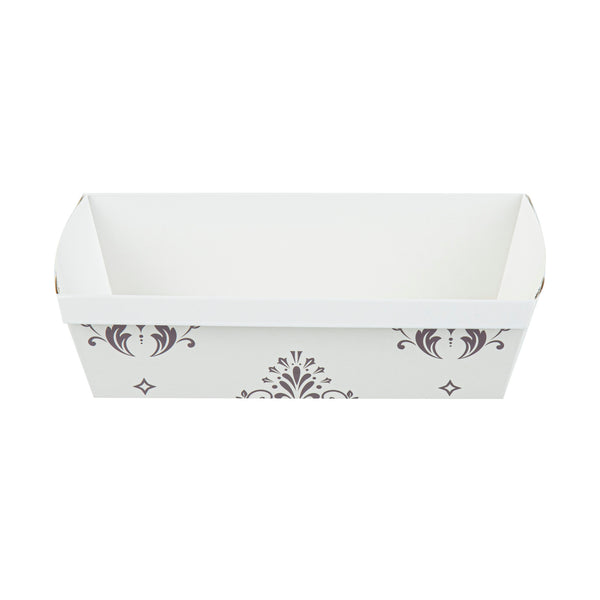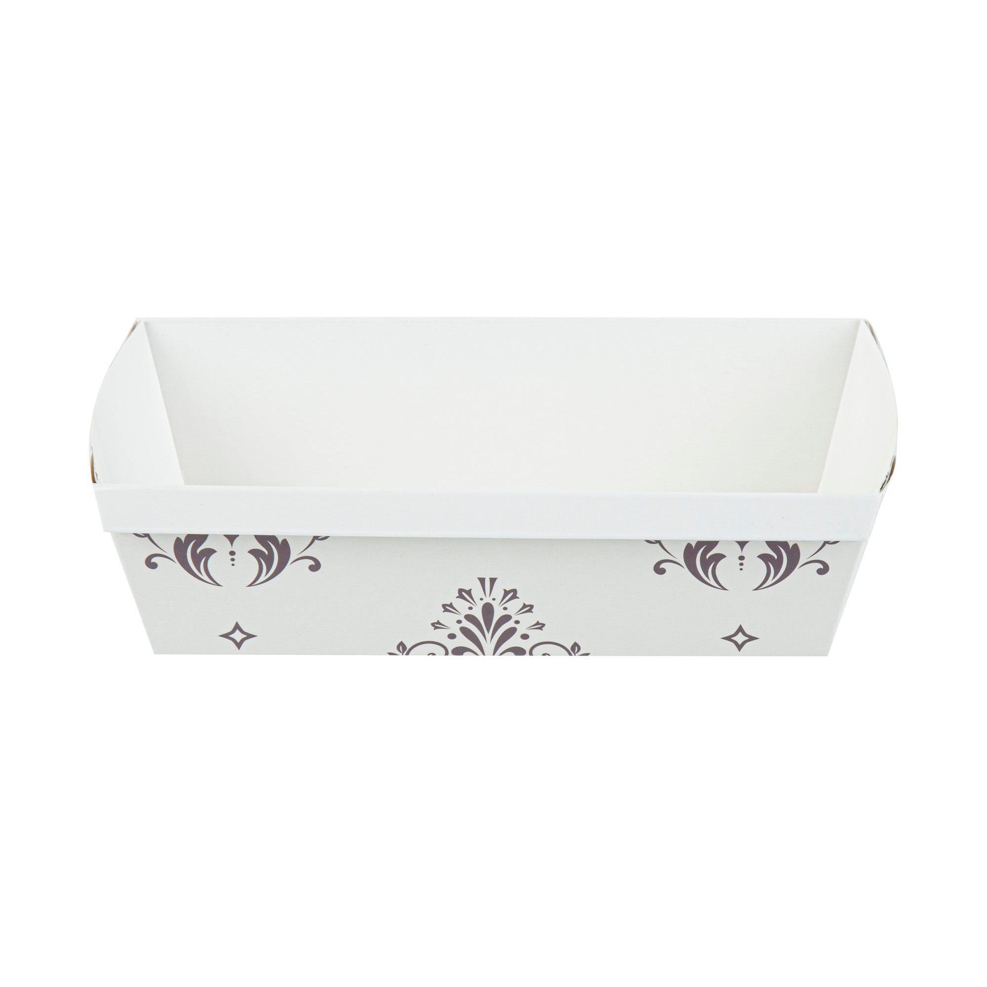 Enhance your baking efficiency with elegant presentation. The Bake Tek Vintage Floral Paper Loaf Pan combines a greaseproof material with a stunning vintage floral design, ensuring your baked goods release effortlessly while adding a touch of sophistication. Oven safe up to 390F, this paper loaf pan allows you to bake directly within its 8-inch length, streamlining your kitchen operations by eliminating the need for additional bakeware. Its greaseproof quality also prevents stains on your baked goods, maintaining their pristine appearance and reducing waste. Ideal for quick bread baking pan needs, this disposable baking pan is also freezer and microwave safe, offering unparalleled versatility in both preparation and storage. Simplify your cleanup process with this disposable solution, saving valuable time and labor costs in bustling foodservice environments. Each order includes 100 Bake Tek Vintage Floral Paper Loaf Pans.
