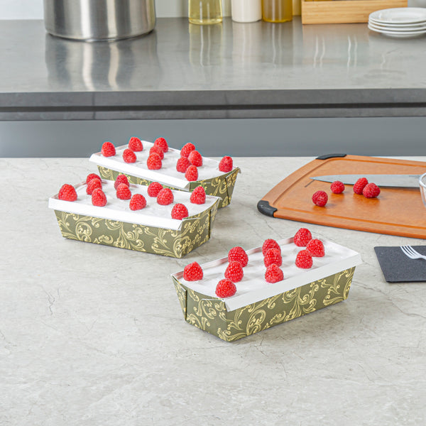 32 OZ DARK GREEN VINTAGE FLORAL PAPER BAKING LOAF PAN - GREASEPROOF