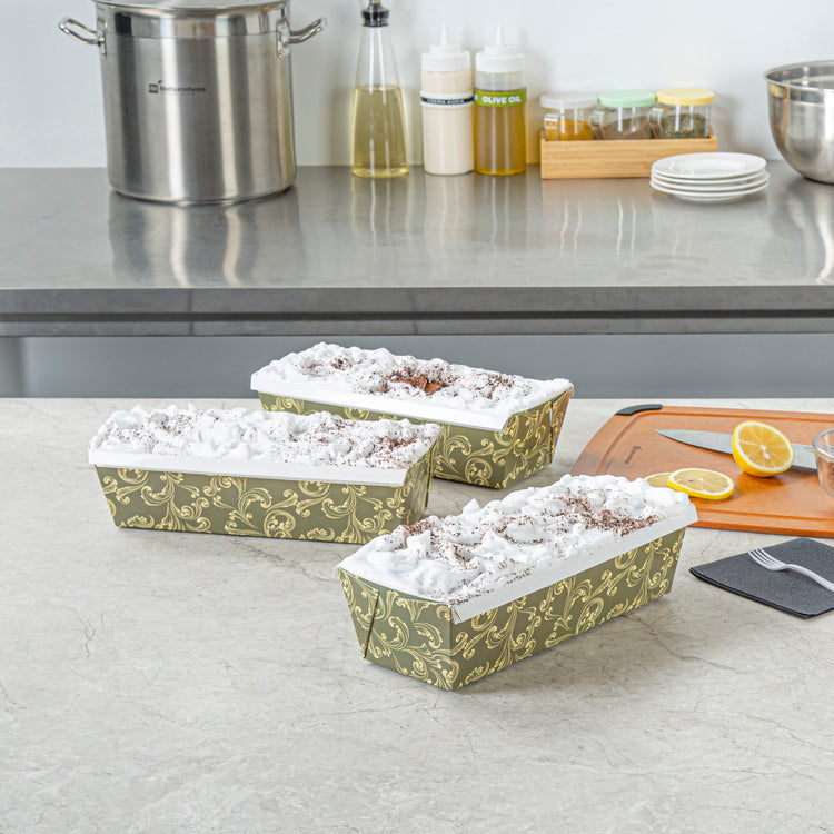 54 OZ DARK GREEN VINTAGE FLORAL PAPER BAKING LOAF PAN - GREASEPROOF