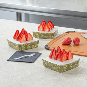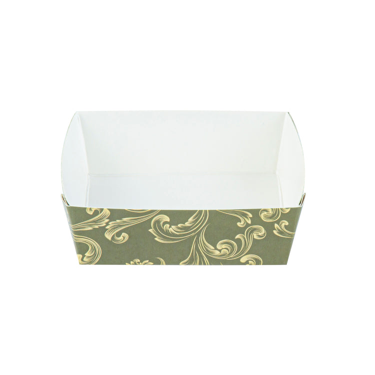 8 OZ DARK GREEN VINTAGE FLORAL PAPER BAKING TRAY - GREASEPROOF