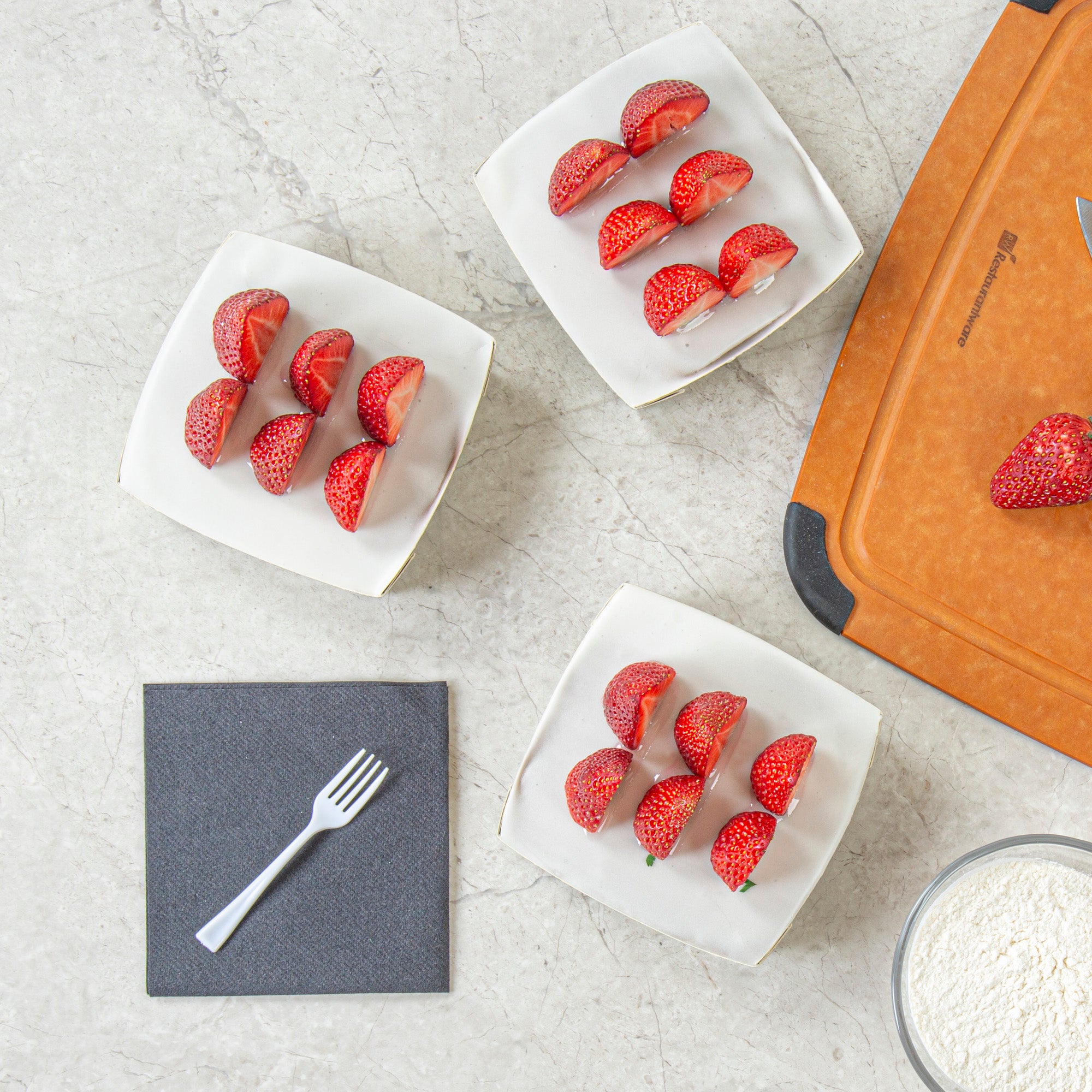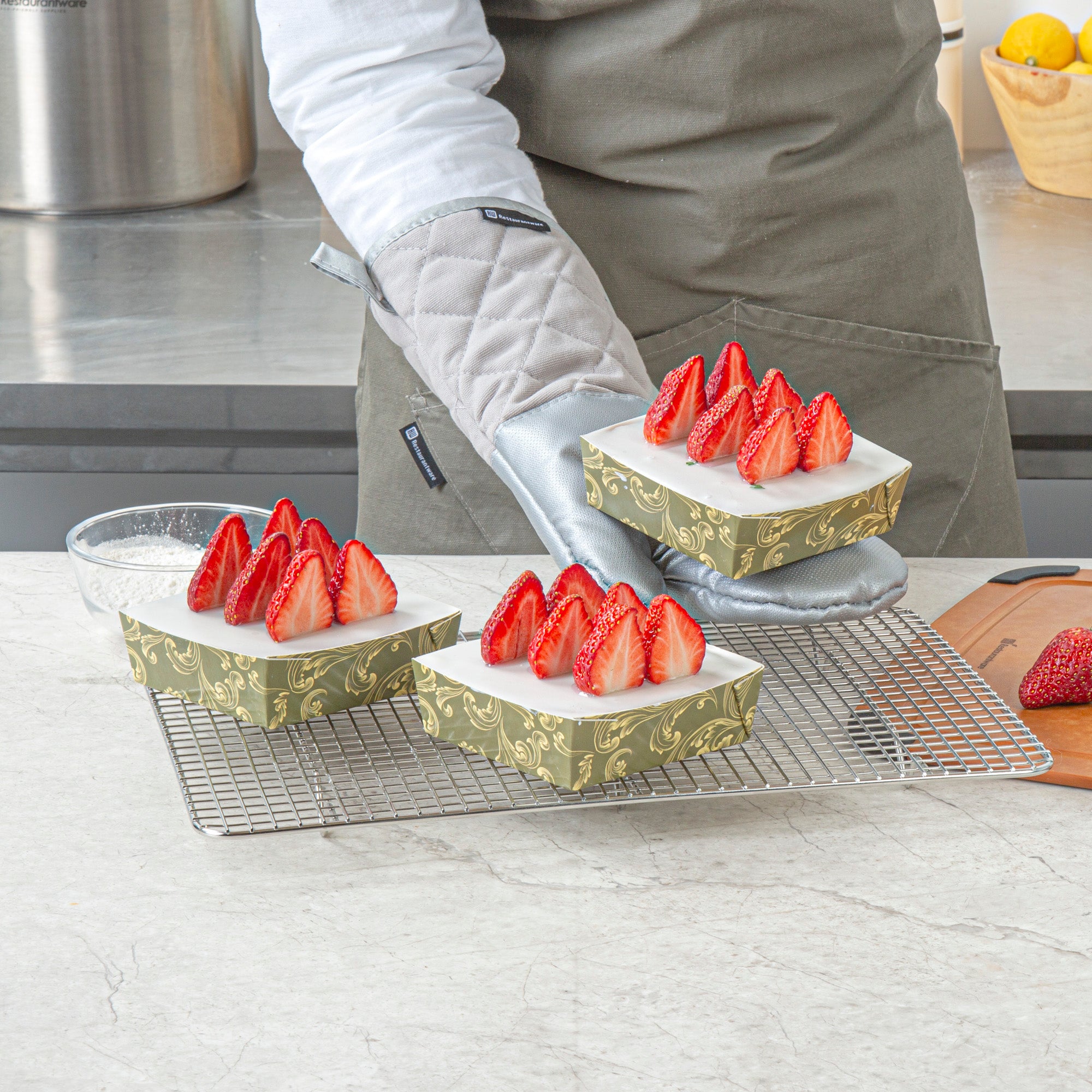 Enhance your baking efficiency with oven-safe paper loaf pans. The Bake Tek Grease-Resistant Baking Tray showcases a grease-resistant construction that withstands temperatures up to 390F, ensuring that your loaves bake evenly and efficiently without warping. This disposable baking pan is perfect for maintaining a clean presentation of your delectable treats, thanks to its grease-resistant design. Featuring an attractive floral background with a white interior, this tray seamlessly complements any bakery or café decor, adding a touch of elegance to your display. With a compact 4.3 inches by 4.3 inches size and a height of 1.4 inches, these trays are ideal for quick breads or pound cakes. Made from recyclable paper, they are not only functional but also environmentally friendly, making them a smart choice for sustainable baking needs. Elevate your foodservice offerings with versatile baking trays that enhance efficiency. Each order includes 100 Bake Tek Grease-Resistant Baking Trays.