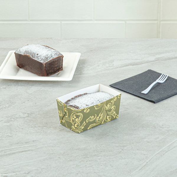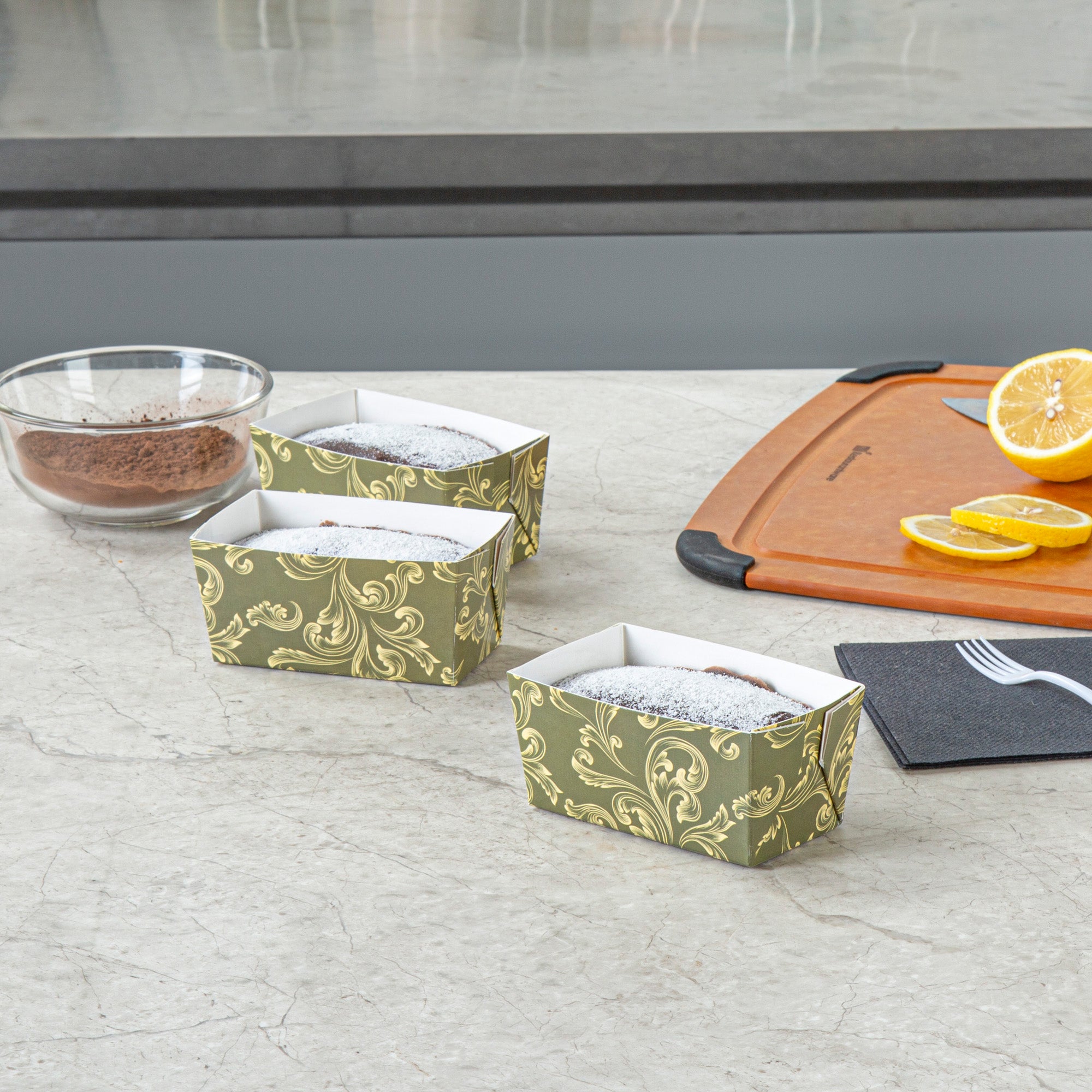 9 OZ DARK GREEN VINTAGE FLORAL PAPER MINI BAKING LOAF PAN- GREASEPROOF