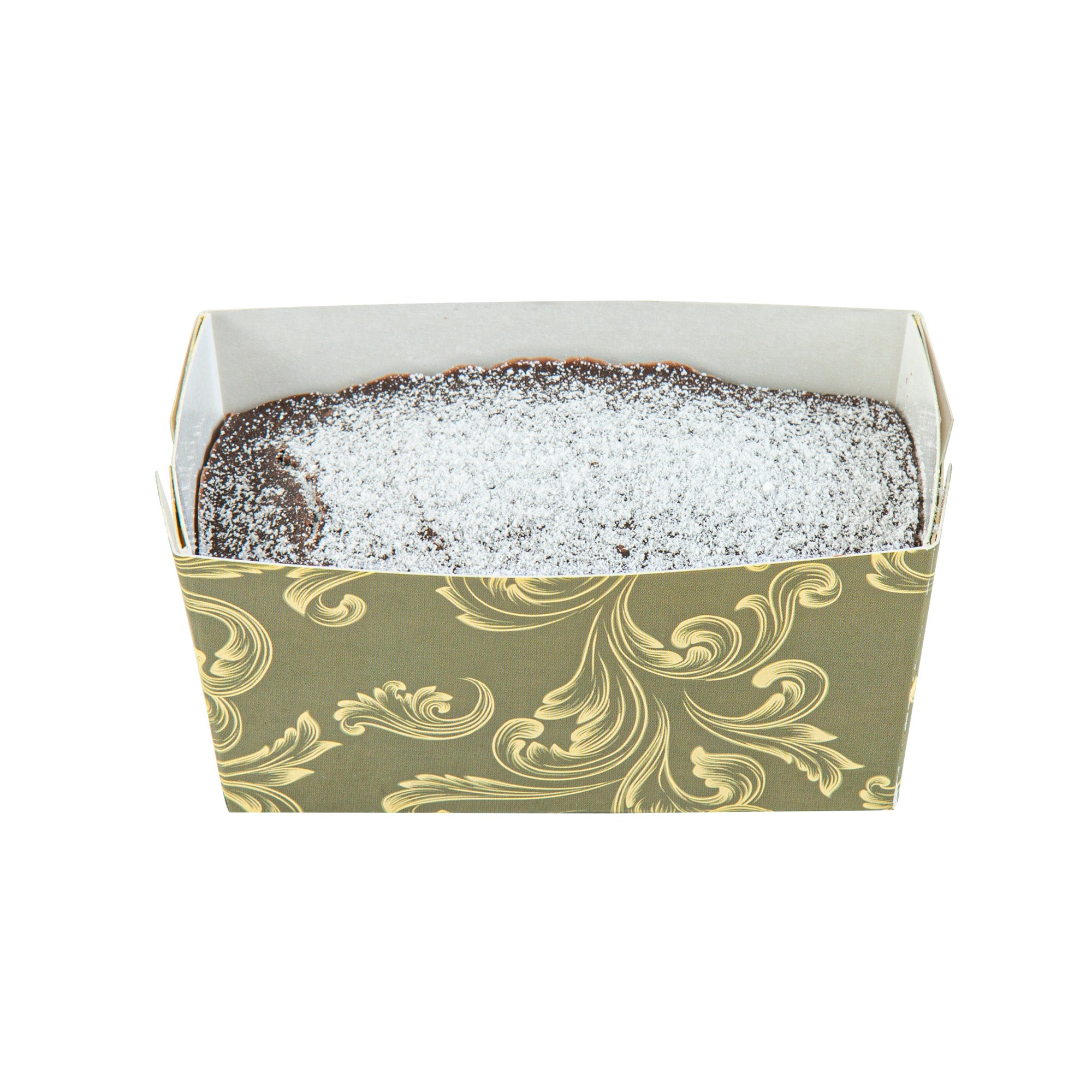 Achieve flawless baking with our grease-resistant disposable loaf pan. The Bake Tek Grease-Resistant Disposable Loaf Pan is oven safe up to 390F, ensuring safe baking without warping, even during high-volume production. Its innovative grease-resistant design prevents leaks, keeping your workspace clean and efficient. With a distinctive floral design, this paper loaf mold enhances the presentation of your delicious baked goods, making it ideal for showcasing quick breads or pound cakes. Measuring 4.1 inches in length, 2.3 inches in width, and 2 inches in height, this baking loaf container is crafted from paper and features no added PFAS, offering a reliable and eco-friendly solution that is both microwave-safe and freezer-safe. Elevate your catering or bakery operations with this versatile, recyclable option. Each order includes 100 Bake Tek Grease-Resistant Disposable Loaf Pan.