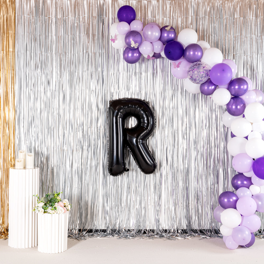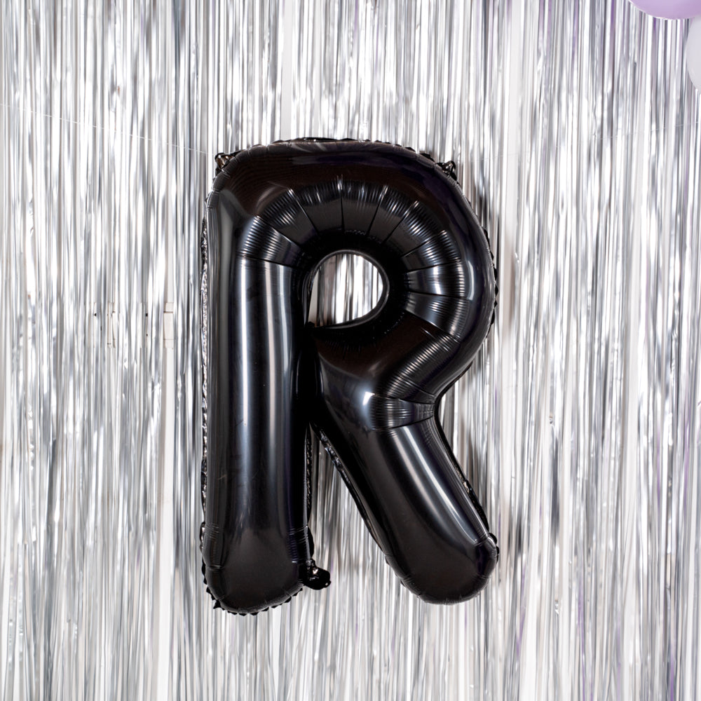 BLACK MYLAR LETTER R BALLOON