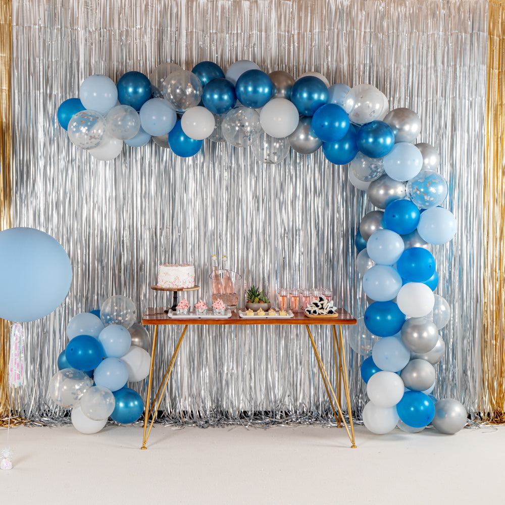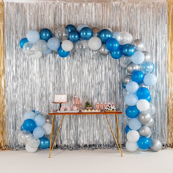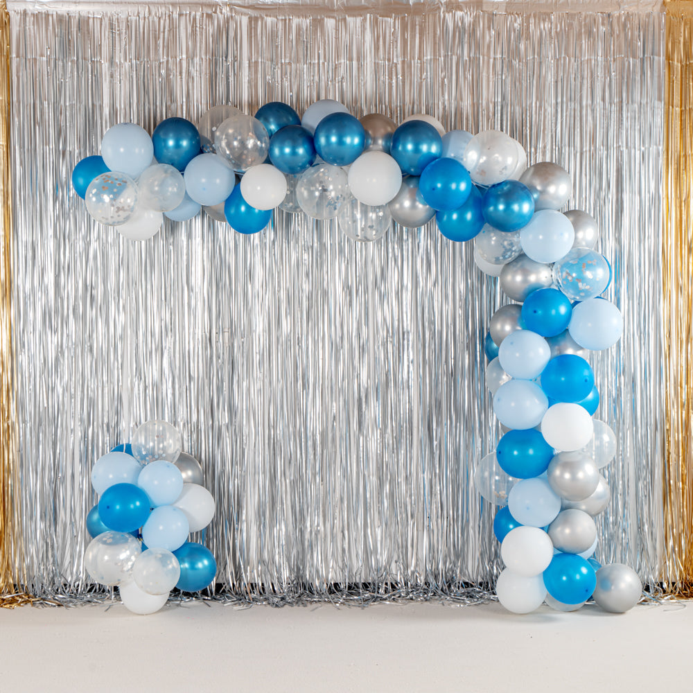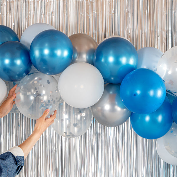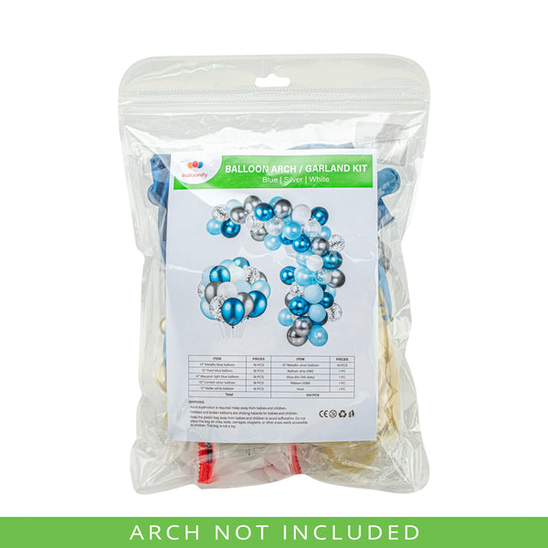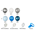 BLUE, SILVER AND WHITE BALLOON ARCH / GARLAND KIT - 104 PIECES