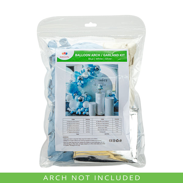 BLUE, WHITE AND SILVER BALLOON ARCH / GARLAND KIT - 142 PIECES