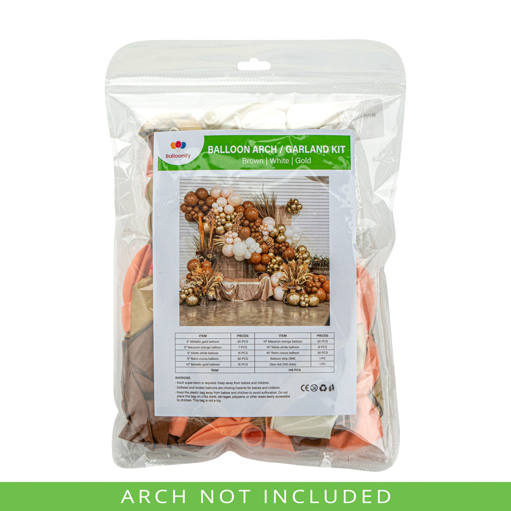 BROWN, WHITE AND GOLD BALLOON ARCH / GARLAND KIT - 145 PIECES