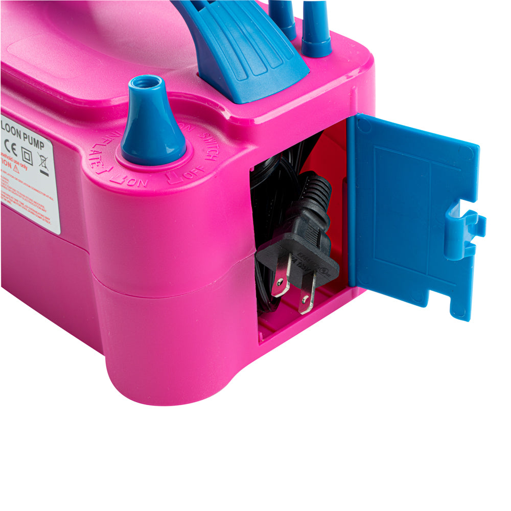 With a compact structure, this electric air pump for balloons is lightweight and suitable for indoor and outdoor usage. This inflator also has a storage space inside it to secure your power chord.