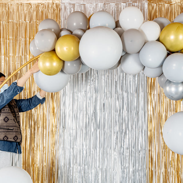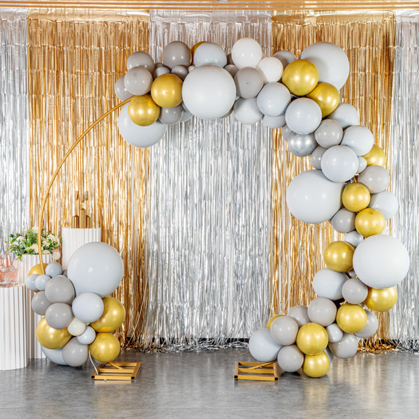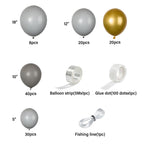 GRAY, WHITE AND GOLD BALLOON ARCH / GARLAND KIT - 121 PIECES