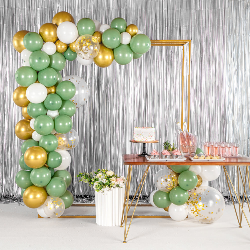GREEN, WHITE AND GOLD BALLOON ARCH / GARLAND KIT - 119 PIECES