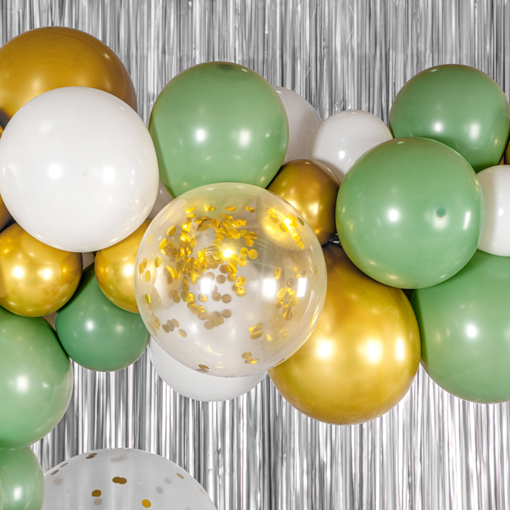 GREEN, WHITE AND GOLD BALLOON ARCH / GARLAND KIT - 119 PIECES
