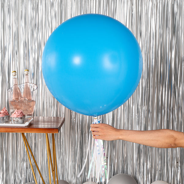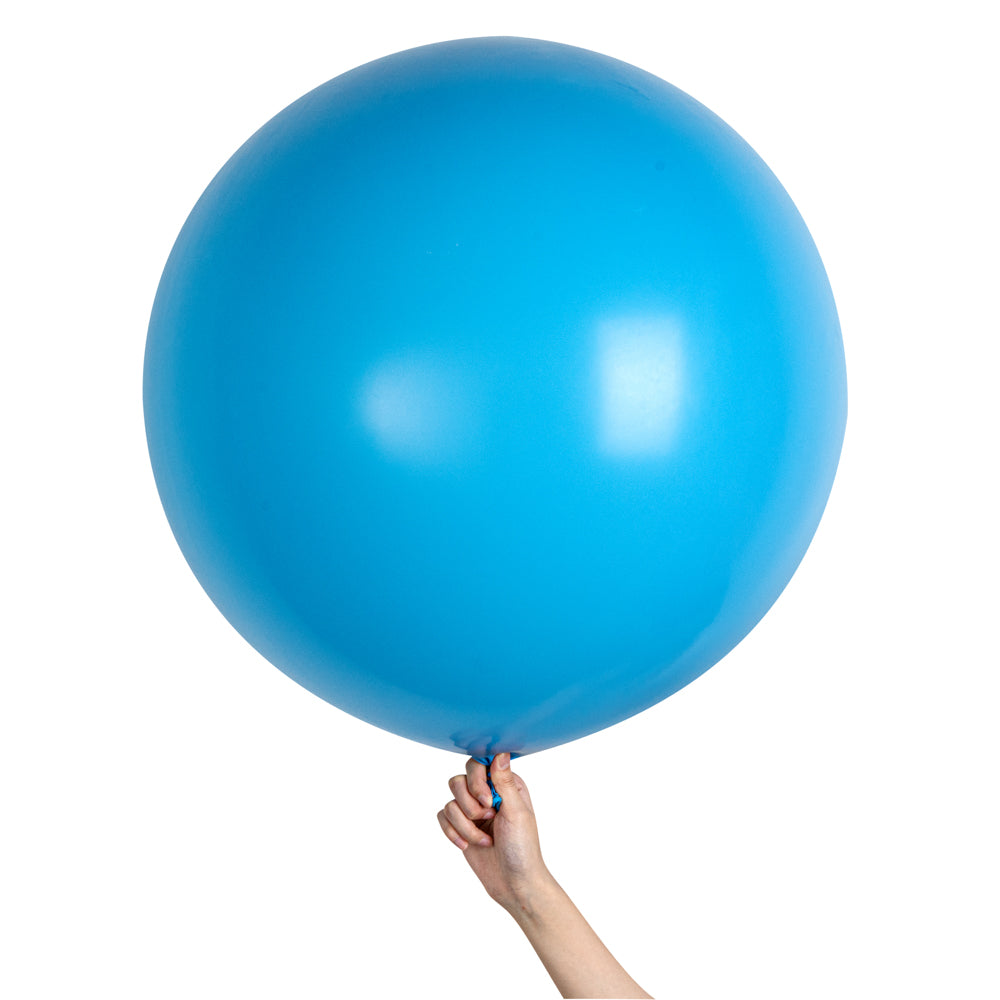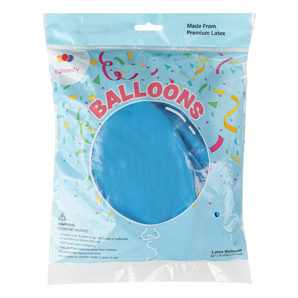 Decorate a baby boy-themed, gender-reveal party with our Balloonify Light Blue Latex Balloons. Crafted using premium latex material, these round balloons will not leave discolored patches once inflated. These large latex balloons feature a light blue shade to provide a dreamy finish to your decorations. The durable material of these thick balloons is sturdy enough to avoid accidental popping. With the help of any type of pump, you can inflate these latex helium balloons to their full capacity. Measuring 36 inches in diameter when inflated, these balloons for decor can be filled with air or helium. Shipped deflated in a 10 count box. Electric air balloon pump (SKU: RWP1061) sold separately.
