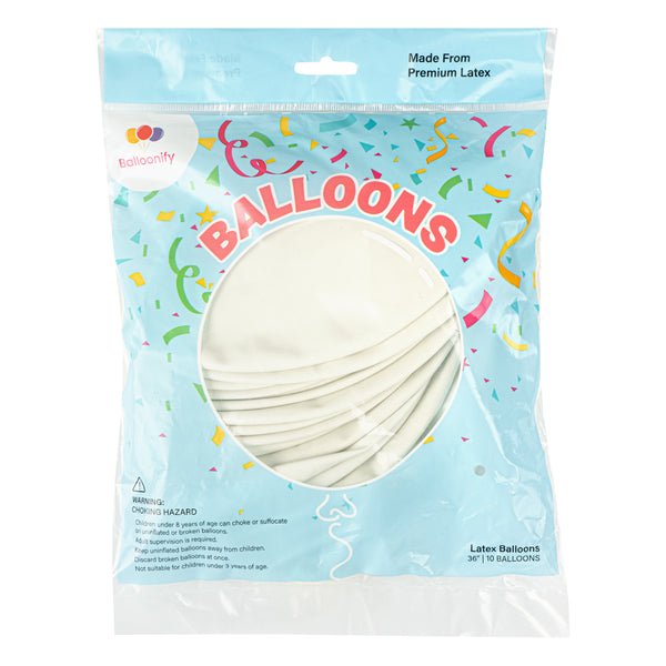 Impress invitees at your success party with our Balloonify Matte White Latex Balloons. Crafted with premium latex, these round balloons stretch equally to stop discolored patches from appearing. With a matte white finish, these large latex balloons emit a tranquil, classy vibe to your event. The durability and sturdiness of these 36-inch latex balloons keep them from bursting easily. Inflate these latex helium balloons using a hand pump to make inflation as simple as possible. Measuring 36 inches in diameter when inflated, these balloons for decor can be filled with air or helium. Shipped deflated in a 10 count box. Electric air balloon pump (SKU: RWP1061) sold separately.