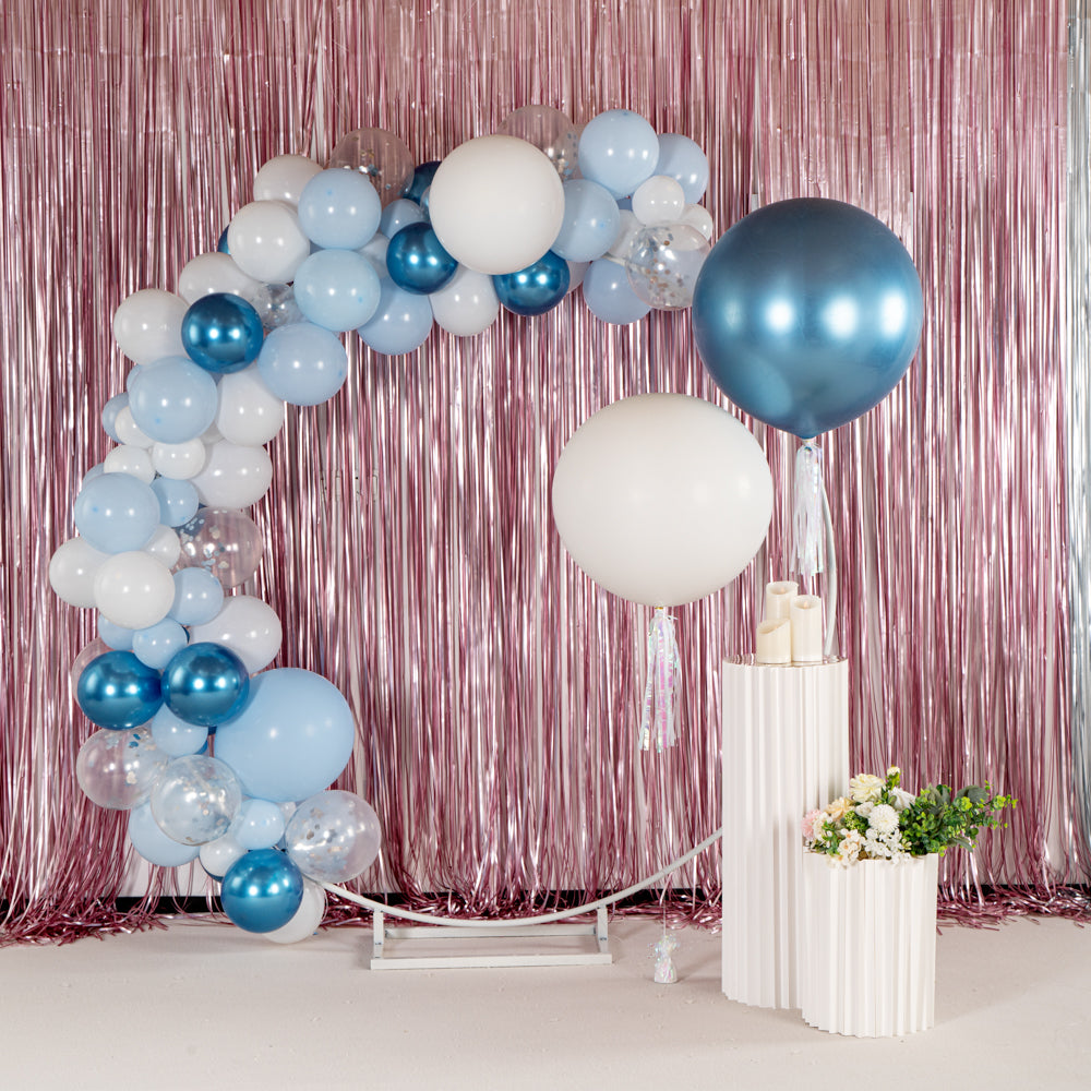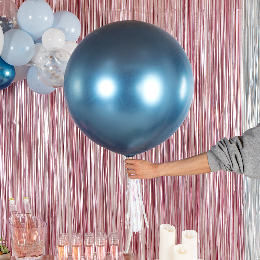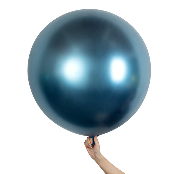 Catch the attention of your patrons with our Balloonify Metallic Blue Latex Balloons. The latex build of these round balloons lets them stretch equally from all sides to curb the appearance of discolored patches. With a metallic blue finish, these large latex balloons will electrify your whole party mood. The durable and sturdy build of these thick balloons ensures that they will not pop or burst. These latex helium balloons can be inflated manually or automatically, saving you time when setting them up. Measuring 36 inches in diameter when inflated, these balloons for decor can be filled with air or helium. Shipped deflated in a 10 count box. Electric air balloon pump (SKU: RWP1061) sold separately.