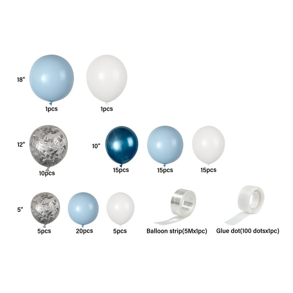 METALLIC BLUE, WHITE & SILVER BALLOON ARCH / GARLAND KIT - 104 PIECES